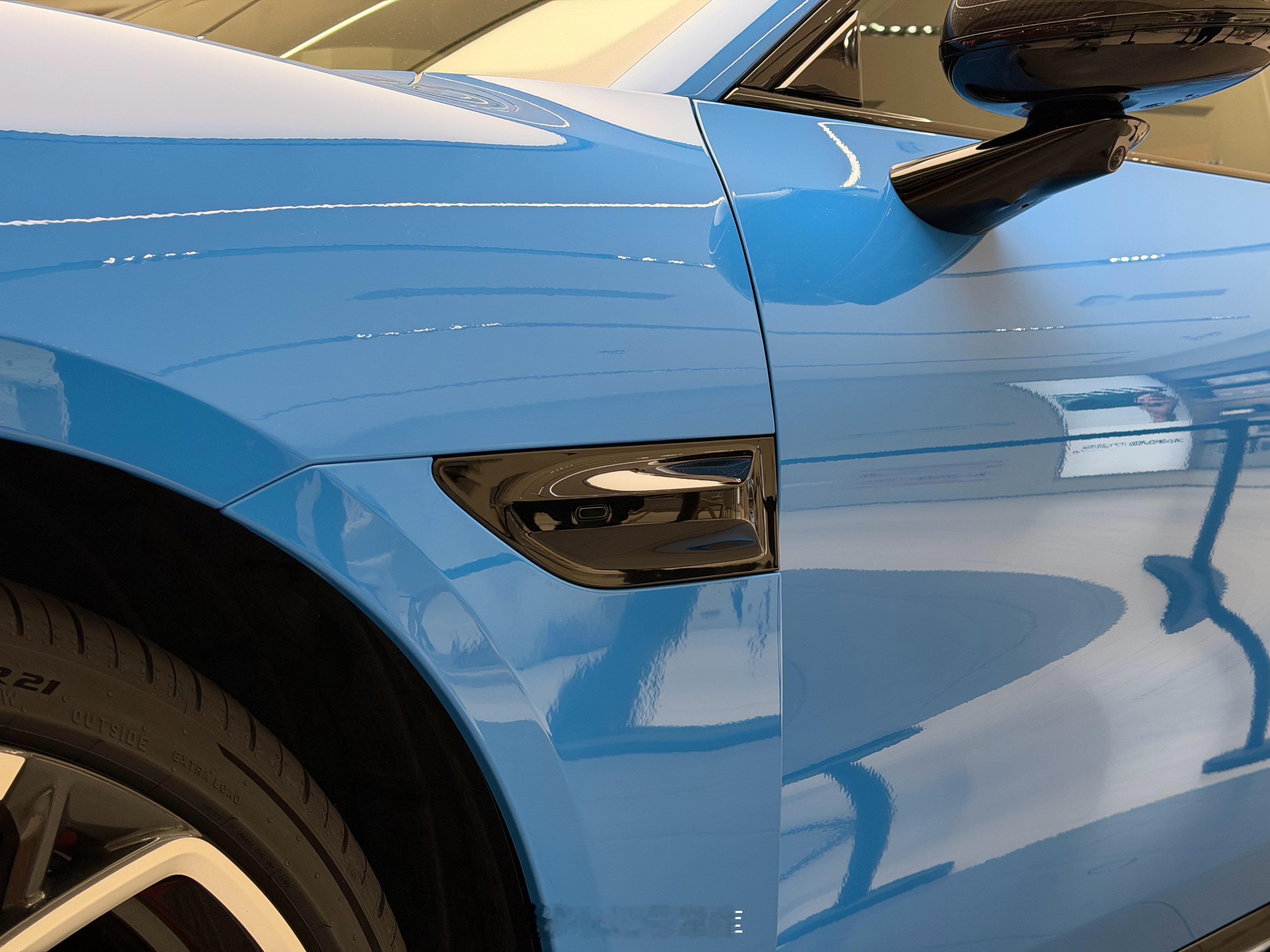 1. 前脸的毫米波雷达明显大了很多2. 安排上了电动前备厢,按钮就在左侧翼子板3. 前后车标都有熏黑的效果4. 前后混合胎宽,且都是 35 的扁平比5. 拥有电动+机械门把手(四门),造型保持和老款相同(手感类似大众 ID. 和问界 M8)