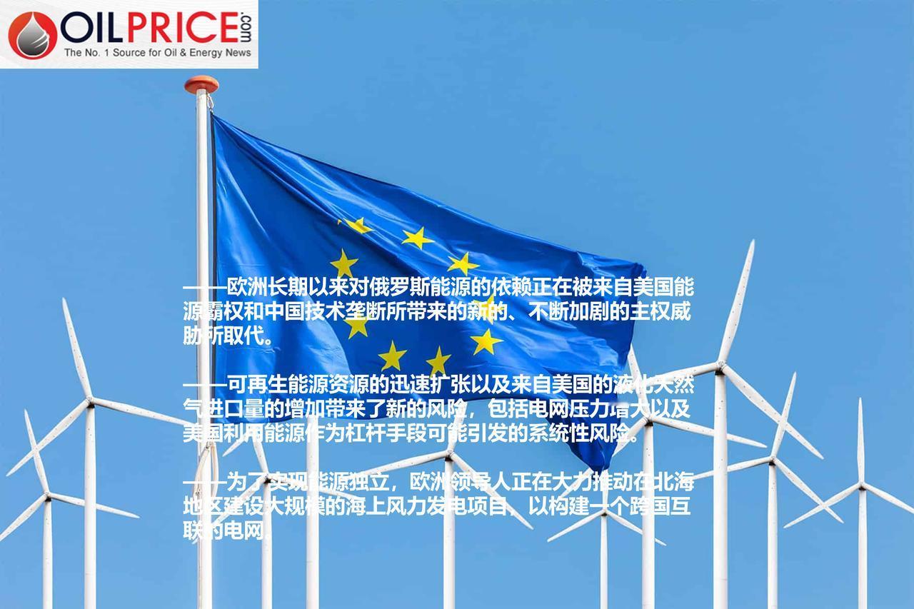 欧洲的清洁能源推进举措带来了新的地缘政治风险 欧洲仍深受其数十年来依赖俄罗斯能源进口所带来的影响。但随着该地区逐渐摆脱对俄罗斯石油和天然气的依赖,欧洲又面临着来自美国和中国的新且不断加剧的能源依赖威胁。欧洲的政策制定者们处境艰难,他们不仅在现实中身处一场关乎全球能源霸权的大规模且高风险的斗争之中,而且在精神层面上也被夹在其中。 2022 年 2 月俄乌战争爆发时,整个欧洲 40%的天然气依赖于俄罗斯的生产商供应。在过去四年里,对俄罗斯能源实施制裁并寻找更可靠、更负责任的供应渠道并非易事。就在上周,欧洲领导人终于同意停止向欧盟进口俄罗斯天然气——但这一全面禁令要到明年才会生效。 在这些对俄罗斯能源的临时禁运之后,欧洲急忙加快了可再生能源的建设步伐。但这种快速扩张却导致了欧洲能源安全方面的重大问题,给电网带来了巨大压力,并导致了电价的剧烈波动。为了弥补这些缺口并加强能源安全,在过去几年里,欧洲积极增加了从美国进口液化天然气的量。但如今,这一决定对于欧洲的主权和韧性而言也似乎变得越来越危险了。 德国对外关系委员会本周早些时候发布的一份备忘录中警告称:“欧洲的能源安全正因全球力量格局的变动而发生改变——从美国的能源主导地位到中国的技术垄断。” “过去被视为合作工具的能源资源和技术如今又被重新用作施压手段。” 总的来说,全球地缘政治正朝着保护主义和民族主义政策的方向发展,这可能会给能源净进口国带来灾难性的后果。而一直秉持自由贸易理念的欧洲,正面临着被卷入美国和中国之间激烈冲突的风险,因为这两个世界最大的经济体正朝着截然相反的方向发展——一个朝着成为世界首个“电气化国家”的目标迈进,另一个则朝着石油主导地位的方向前进。而它们都希望整个世界都能随之做出同样的选择。 过去,美国曾被视为远离俄罗斯和中国那些不稳定能源大国的一条安全通道。但专家们认为,这种态势正在迅速发生变化。该委员会表示,确实令人担忧的是,美国现在会不惜一切代价确保自身的能源主导地位——包括但不限于对格陵兰岛的强行吞并——而完全不考虑与欧洲的联盟关系。但另一种选择,即与中国亲密合作,听起来也不那么理想了。 因此,该委员会认为:“德国应当开始将美国在能源领域的主导地位、俄罗斯在化石能源方面的掌控能力以及中国在技术领域的整合态势,视为一种潜在的系统性风险。” 特朗普对格陵兰岛的强硬态度尤其成为了欧洲领导层的一个重要转折点,促使该大陆重新积极地寻求能源独立。因此,九个在北海拥有利益的国家加大了对大规模海上风力发电项目的开发力度,这些项目将包括建设一个连接多个欧洲国家的电网。 尽管这项新协议的重点在于增强欧洲的能源独立性,但领导人表示这并不意味着要终止与美国的贸易关系。欧盟能源专员丹·约根森曾表示:“我们并不反对与美国进行贸易——恰恰相反。但我们当然清楚——这一点对所有国家都适用,不仅对美国而言——我们并非要以一种新的依赖关系取代现有的依赖关系。我们希望发展自己的能源,并且我们的未来战略是摆脱对天然气的依赖。” 与此同时,据德国对外关系委员会称,欧洲也渴望发展更多样化的供应商,并与志同道合的伙伴建立“互利的能源合作关系,以避免不平等和交易性的依赖关系”。