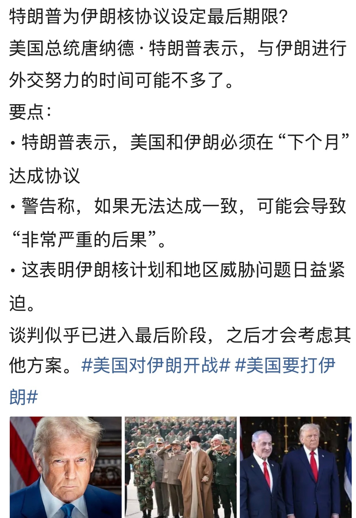 特朗普为伊朗核协议设定最后期限?伊朗中东局势
