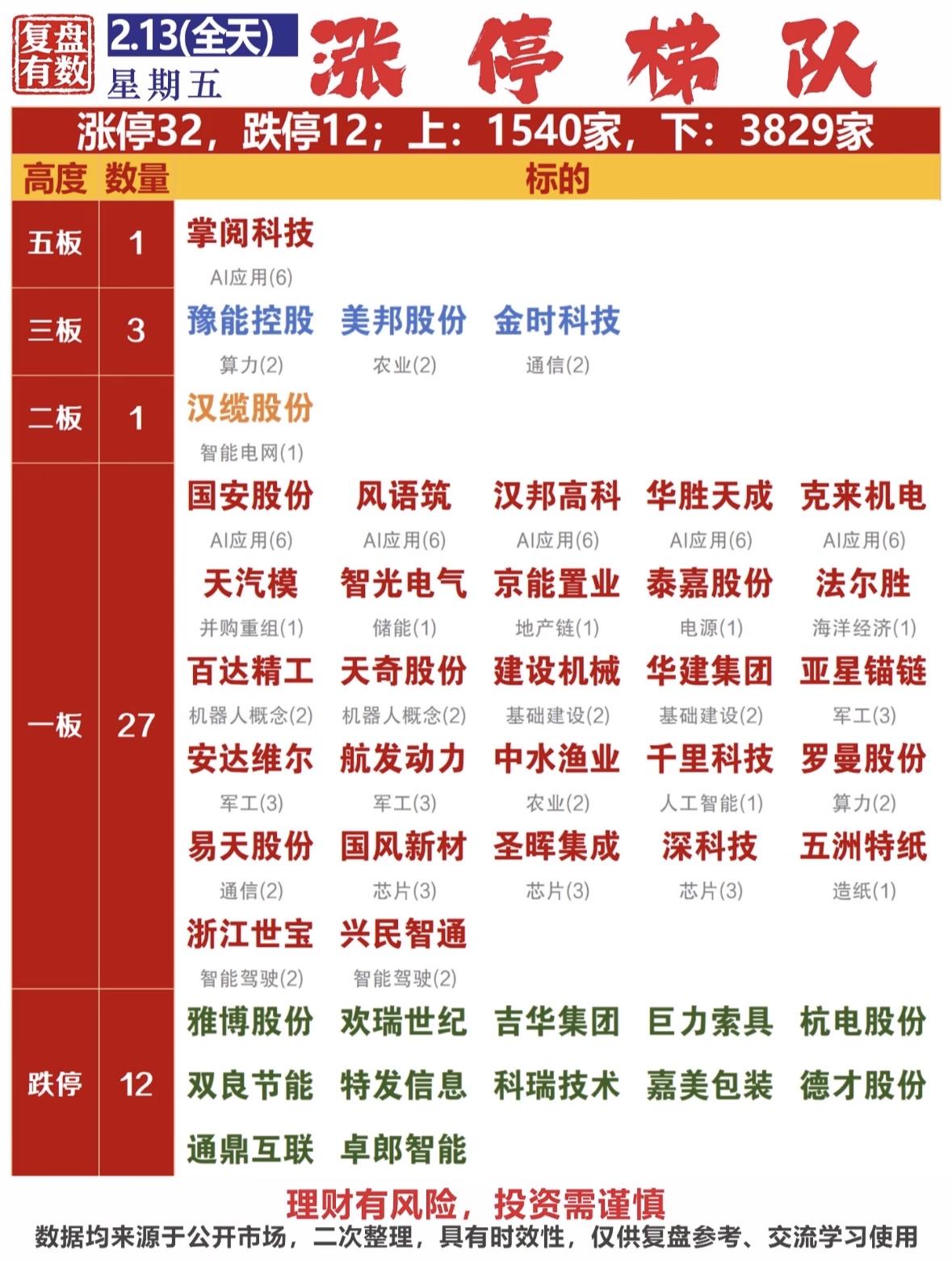 2月13日股市涨停梯队揭秘!📈📉 AI应用领涨,军工芯片活跃,市场分化加剧,投资需谨慎。