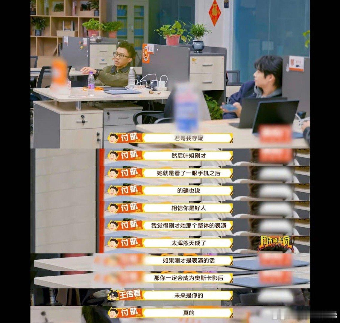高叶把付航骗傻了周五晚高疯 付航最失控的一次失控,是被高叶夸到失控。别人控场靠怼他,高叶控场靠夸他。他那个想绷住又绷不住的表情,比任何接梗都好笑。建议节目组给高叶加钱。