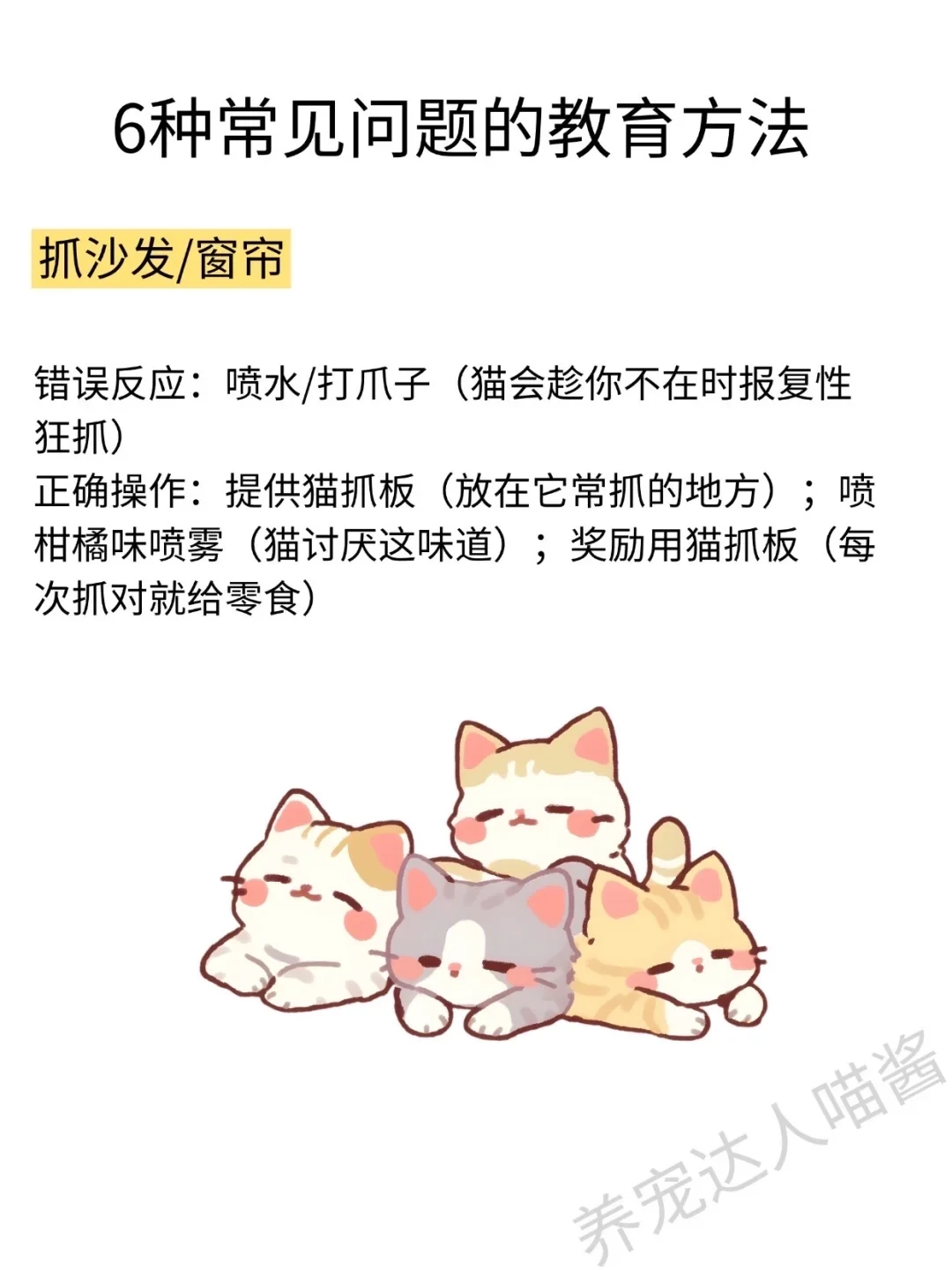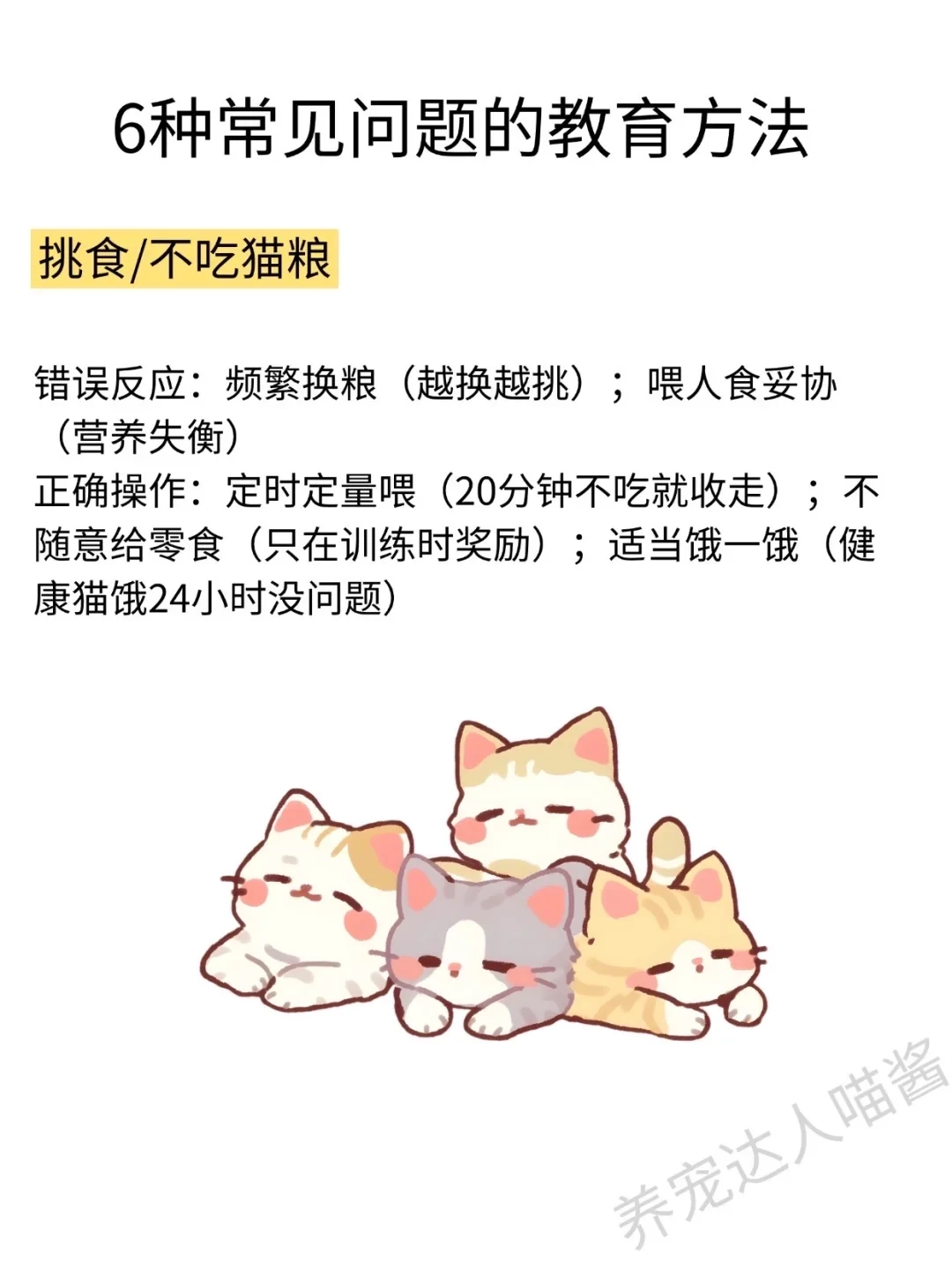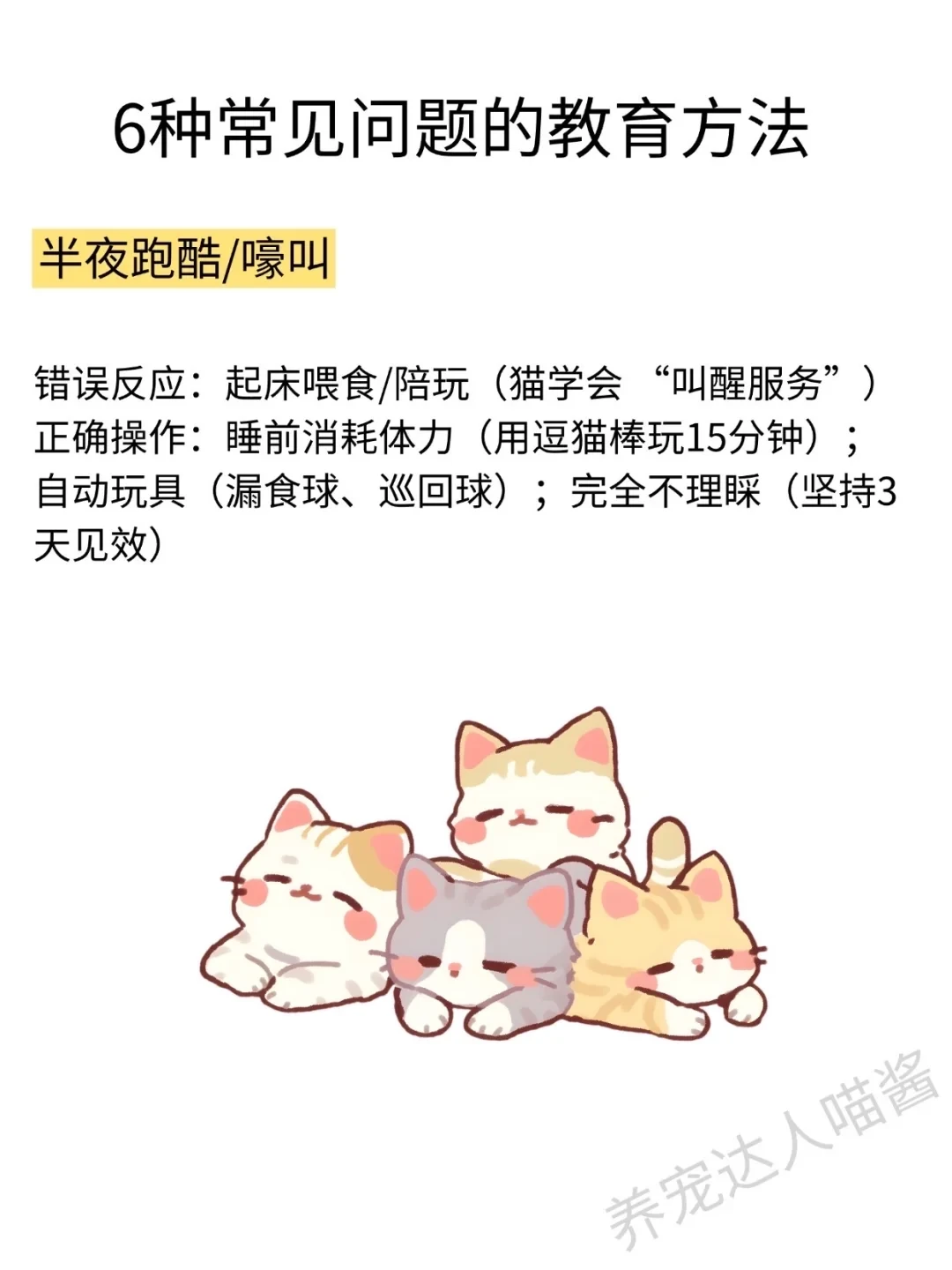教育猫咪要遵循奖励好行为、忽略坏行为,每次 5 分钟、每天 2-3 次短时高频训练,全家统一规则的基本原则。