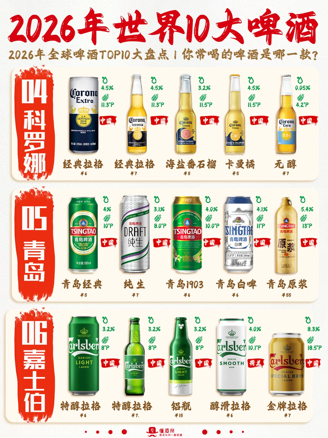 2026年世界10大啤酒品牌🍺🍺🍺