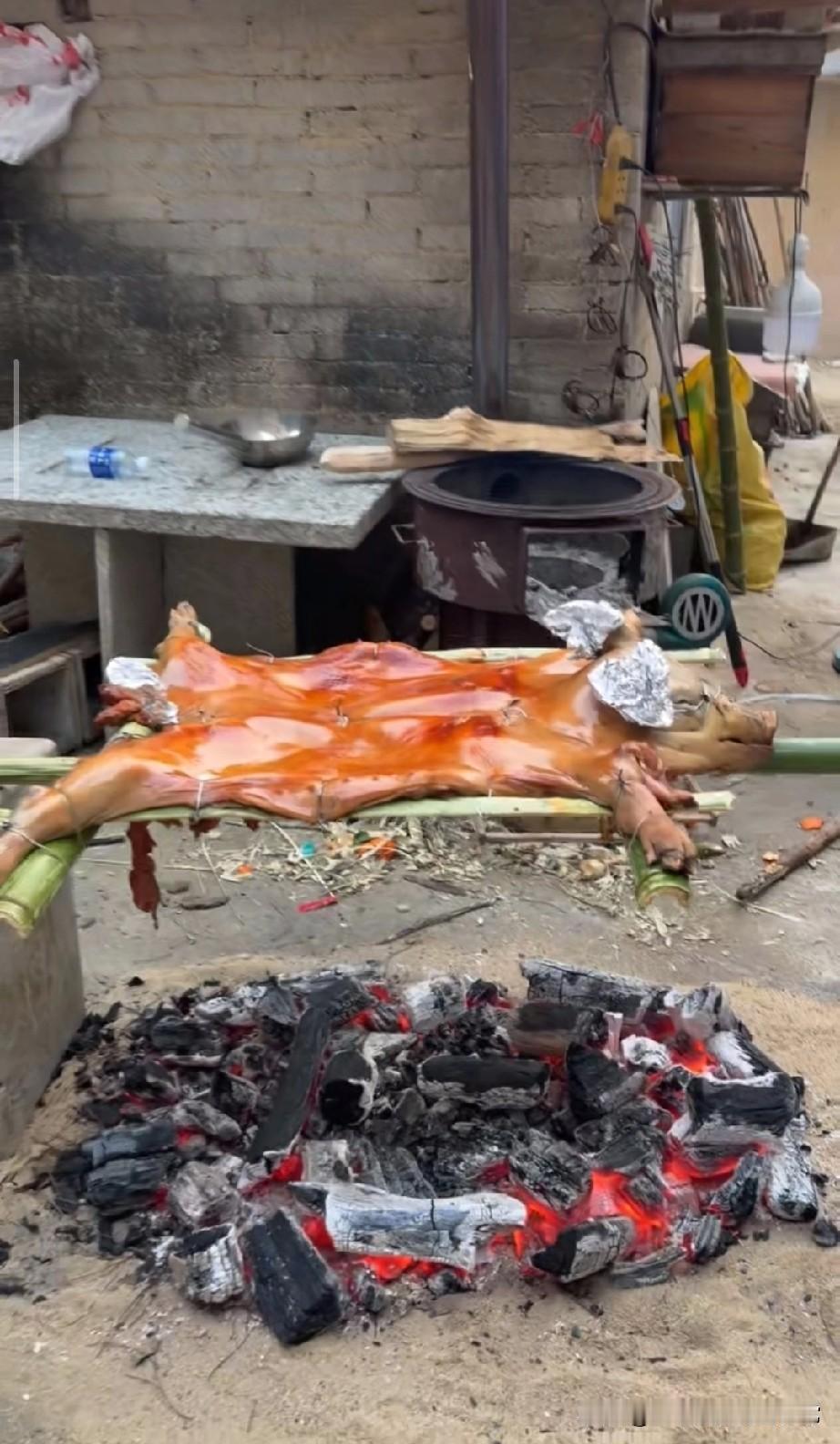 湛江人过年的仪式感 第一批返乡的人,已经把烤猪安排上了🔥 谁再说湛江人过年没年味?第一批返乡的“主力军”已经把年味焊在院子里了! 刚到家,院子里就支起了炭火,整只乳猪架在青竹上烤得滋滋冒油。猪皮被烤得红亮油润,像琥珀一样泛着光,耳朵和蹄子用锡纸包着防焦,连空气里都飘着焦香和肉香。 这哪是烤猪啊,这是湛江人刻在骨子里的过年仪式感!在外打拼一年,就盼着这口热乎的家乡味。亲戚们围在炭火边唠嗑,等着猪皮烤到酥脆,一刀下去“咔嚓”响,再蘸上白糖,那滋味,比山珍海味还上头。 有人说现在过年没年味了,可在湛江,只要这头烤猪在炭火上转着,年味儿就从来没淡过。毕竟,最浓的年味,从来都藏在家人围坐、烟火升腾的院子里。 你家过年有什么必吃的仪式感美食?评论区晒出来,让我看看谁家的年味最足!