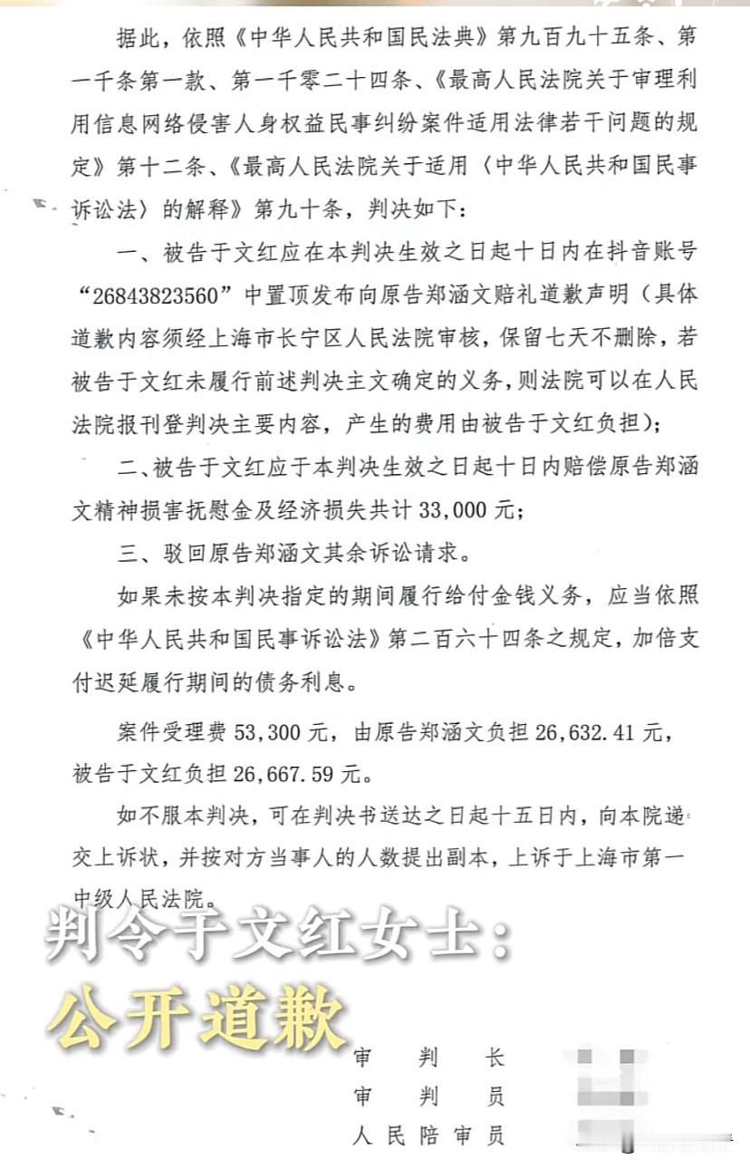 2月13日郑涵文发布视频称,她起诉于文红网络毁谤一案胜诉,她表示,这次胜诉,为持续两年多的恶意纠缠,也为那段时间的网络暴力恶意裹挟的黑暗时光,画上了一个迟到而又坚定的句号。 她说,2023年9月17日,她筹备的柏荟超凡之夜,是她与团队筹备已久的高光时刻,却被于文红女士处于商业竞争目的,散布不实言论,那段时间她和她的家人受到惊吓和伤痛,他没有被这些打倒,一直坚持到现在。 她说,我要告诉所有人,不要怕,更不要忍,清白不是沉默的理由。 记得当时这个事情闹的沸沸扬扬,还牵扯进了明星伊能静,后来证实伊能静只是提前录播,没有到现场,于文红出来澄清并且还小以米粒的名义捐款。 那段时间郑涵文一直没有出来回应此事,时隔两年多胜诉,她发布了视频出来澄清自己,这件事情大家怎么看?