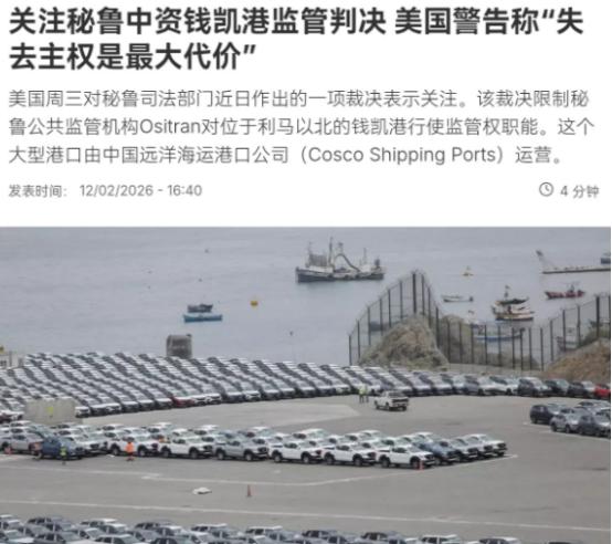 美国自己得不到,就想要搅黄我们的项目!2月13日,根据法新社报道,美国国务院西半球事务办公室声称,秘鲁可能无法对其最重要的港口之一钱凯港行使控制权,该港口由“掠夺性”的中国业主管辖。这应成为对该地区乃至全世界的警示:廉价的中国资金要以主权为代价。 美国这就是没事找事,纯粹是自己得不到这个项目,就想搅黄中国和秘鲁的合作,心眼坏到了骨子里。咱们老百姓都明白一个道理,做生意讲究你情我愿,互利共赢,中国和秘鲁合作钱凯港,都是双方商量好的,从头到尾都是合法合规的,美国凭什么指手画脚,说三道四? 美国说秘鲁管不了自己的钱凯港,这纯粹是造谣。钱凯港的主权从头到尾都是秘鲁的,中国企业只是负责运营管理,就像咱们请人帮忙打理自己的店铺,店铺还是咱们自己的,主权一点都没丢。 秘鲁的国会、外交部、司法部都明确表示,中企投资钱凯港,根本不是移交主权,秘鲁自己都不担心,美国却非要替人家担心,不是没事找事是什么? 还有美国说中国的资金是“掠夺性”的,更是无稽之谈。中国给秘鲁的投资,没有附加任何苛刻条件,反而实实在在帮了秘鲁大忙。 钱凯港建成后,结束了秘鲁不能停靠超大型集装箱船的历史,把秘鲁到中国的海运时间缩短到23天,节约了20%以上的物流成本,大大方便了秘鲁的货物出口。 截至2025年底,钱凯港累计创造税收超过2亿美元,还带来了3000多个固定工作岗位,带动当地旅游业、餐饮业一起发展,秘鲁老百姓实实在在得到了好处。 美国之所以这么做,核心就是自己没拿到这个项目,心里不平衡,想搅黄我们的合作。钱凯港的战略位置很重要,能停靠包括航母在内的大型船只,美国一直想加强在西半球的管控,拿下这个港口就能强化它在拉美的影响力。 结果这个项目被中国企业拿到了,美国不甘心,就开始造谣抹黑,想让秘鲁放弃和中国的合作,好让自己的资本趁机介入。 其实这不是美国第一次干这种事了,以前就有过好几次。就说巴拿马的港口,中国长和集团凭着正规手续,拿下了巴拿马运河两端两个港口的经营权,几十年里投入大量资金升级设施,给当地创造了上万个工作岗位,从来没违规过。 可美国看着眼馋,就向巴拿马施压,逼着巴拿马最高法院裁决合同违宪,想把中企挤走,让美资接盘。好在中方及时反制,巴拿马总统只能服软,让长和集团继续运营港口,美国的算盘最终落了空。 还有澳大利亚的达尔文港,中企花高价拿下经营权,把一个亏损的港口盘活成盈利的优质资产,带动当地经济发展。 可在美国的施压下,澳方就想反悔收回港口,背后还是想让美资接盘。这些例子都能看出来,美国就是见不得中国和其他国家合作顺利,自己得不到的,也不想让别人得到。 美国还想警告全世界,不要接受中国的廉价资金,可全世界都不是傻子。中国和很多国家的合作,都是互利共赢的,比如巴西的电网、阿根廷的铁路、智利的锂矿,都有中资的身影,从来没有哪个国家因为接受中国投资而丢了主权,反而都加快了发展步伐。 美国自己在全世界搞掠夺,抢其他国家的资源、赚其他国家的钱,没人敢说一句,现在看到中国和秘鲁互利共赢,就开始造谣抹黑,典型的双重标准。 面对美国的造谣,中国驻秘鲁使馆已经明确表示坚决反对,中方会坚决维护中企的正当利益。秘鲁也很清楚,得罪中国没有好果子吃,虽然可能会在姿态上给美国一个交代,但绝不会真的损害中企的利益,更不会放弃和中国的合作。 毕竟和中国合作,秘鲁能得到实实在在的好处,和美国合作,只会被美国牵着鼻子走,吃亏的还是自己。 美国就是霸权主义作祟,自己没本事竞争过中国,就靠造谣、施压的手段搅黄别人的合作。可现在的中国,已经不是以前那个任人欺负的样子了,我们和其他国家的合作,合法合规、互利共赢,不会因为美国的抹黑就停止。 美国应该明白,现在的世界,讲究的是互利共赢,不是霸权主义。自己得不到项目,就造谣搅局,只会让全世界看清它的真面目。