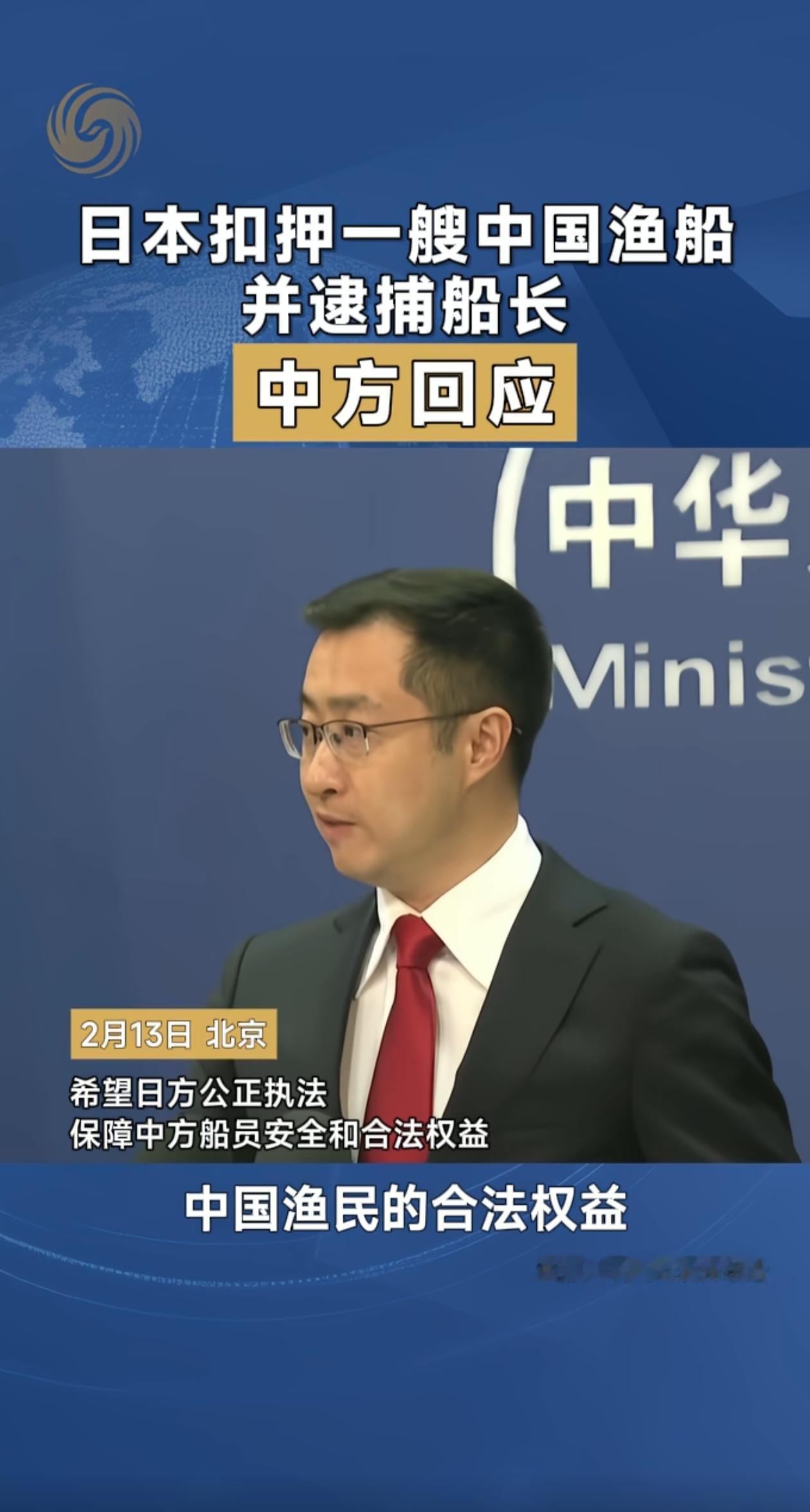 2月13日日本扣押中国渔船,并逮捕船长,我外交部声明要求保障渔民合法权益,提醒日本公正执法。其实我看这个事情不简单,据说中国渔民是进入了日本所谓的专属经济区,如果只是不小心越界了,完全可以提醒警告,直接扣押逮捕,行为未免过激,马上过年了,日本不放人放船的话,也许后果很严重。