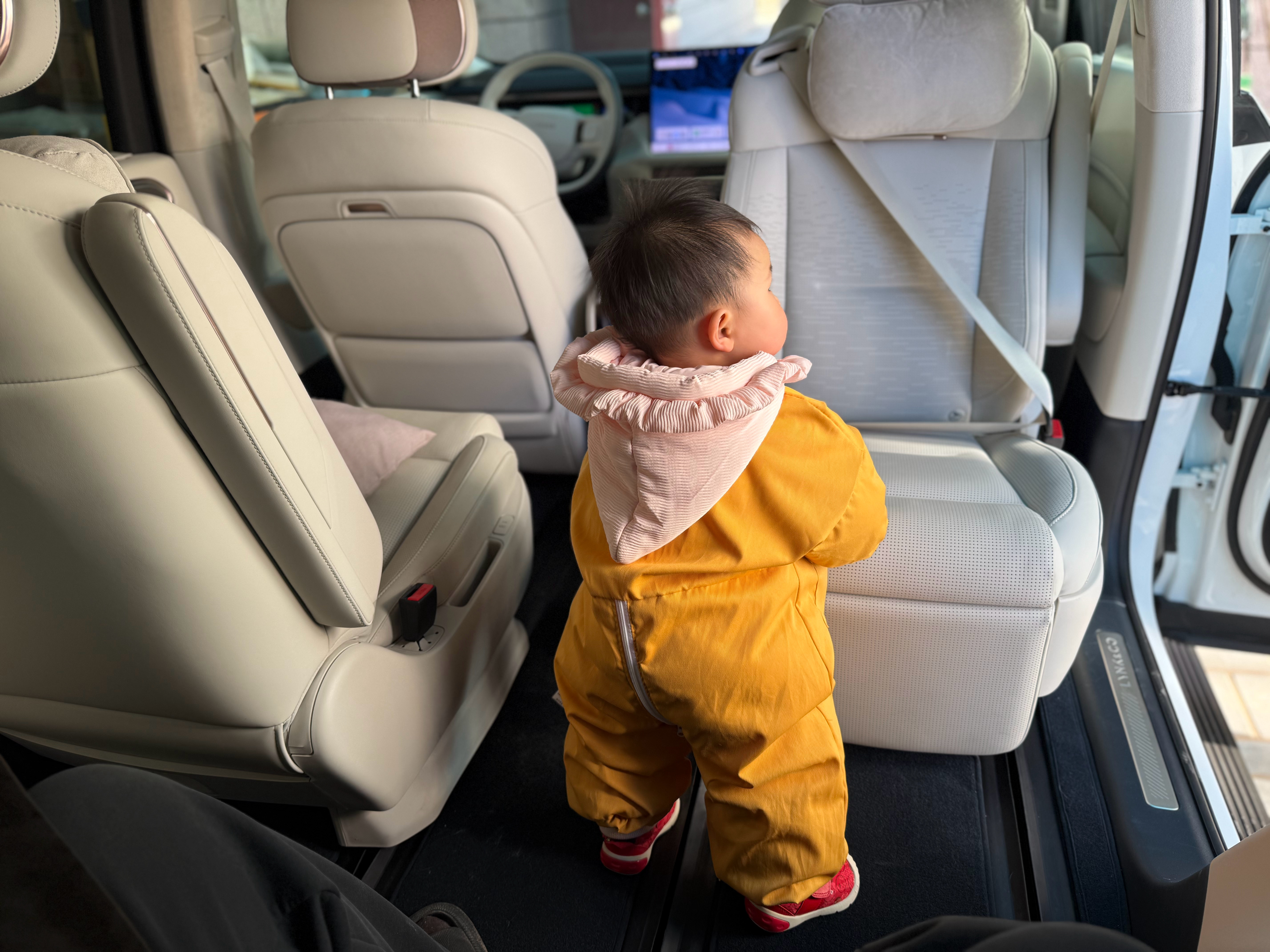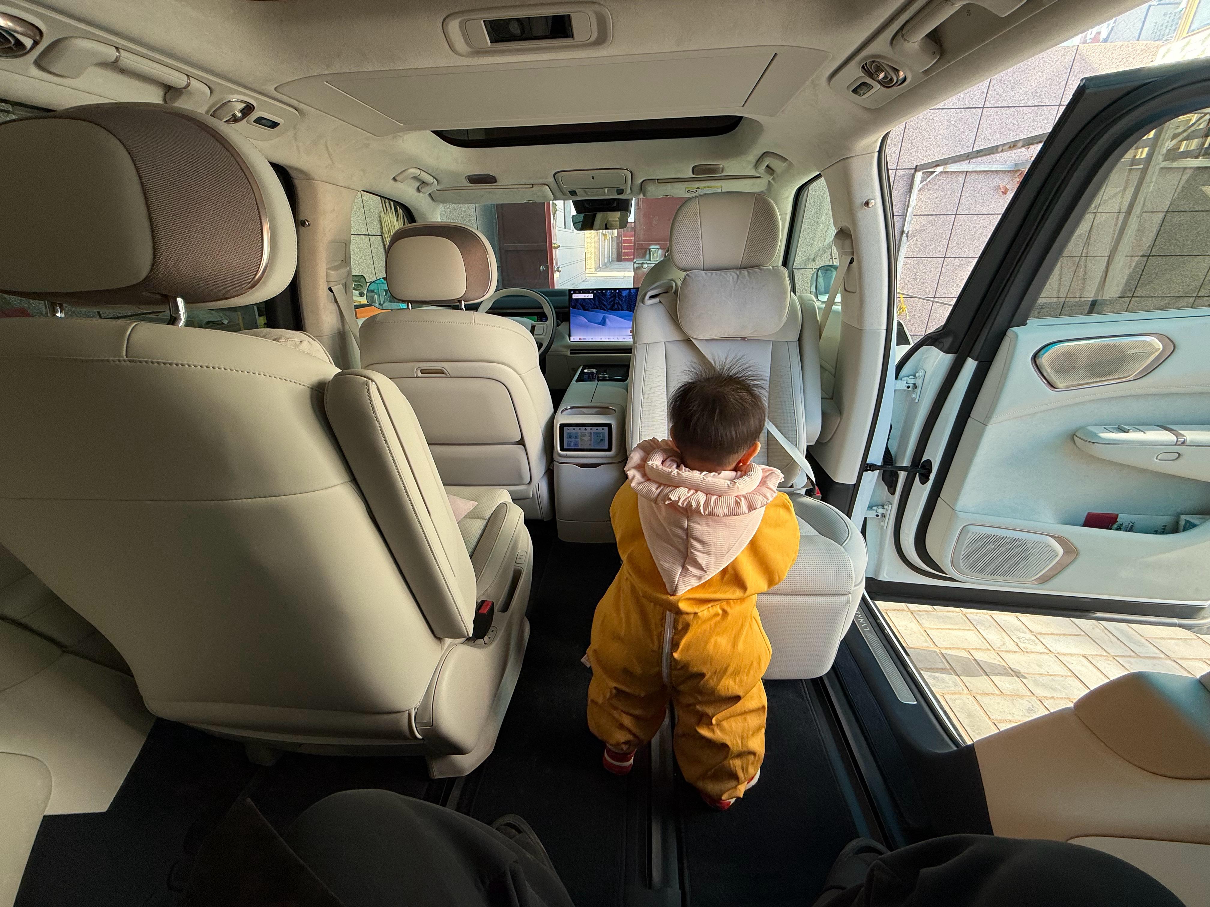 我的领克900停下来时候二排的旋转座椅就是一个带娃好地方女儿喜欢在车上探索来探索去对坐后,空间更大移动的客厅了属于是日常使用时候还有两个对小孩友好的设计一个是第三舒适度,船感在同级别里不算太明显其次是前后四个电吸门,关门时候自动吸附不容易打扰小孩子休息。