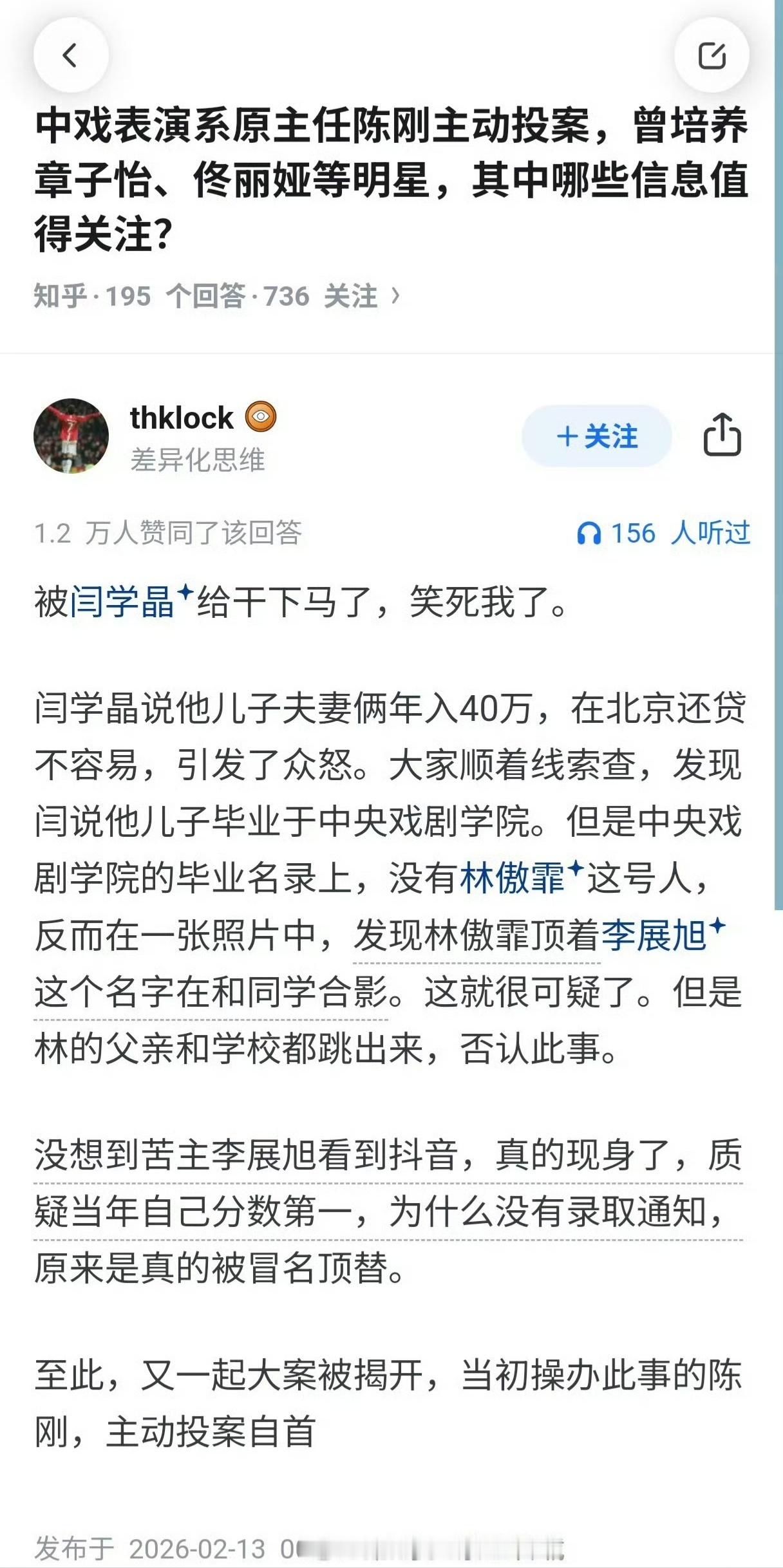 曝闫学晶三位亲属都在中戏拔起萝卜带起泥,迟早的事