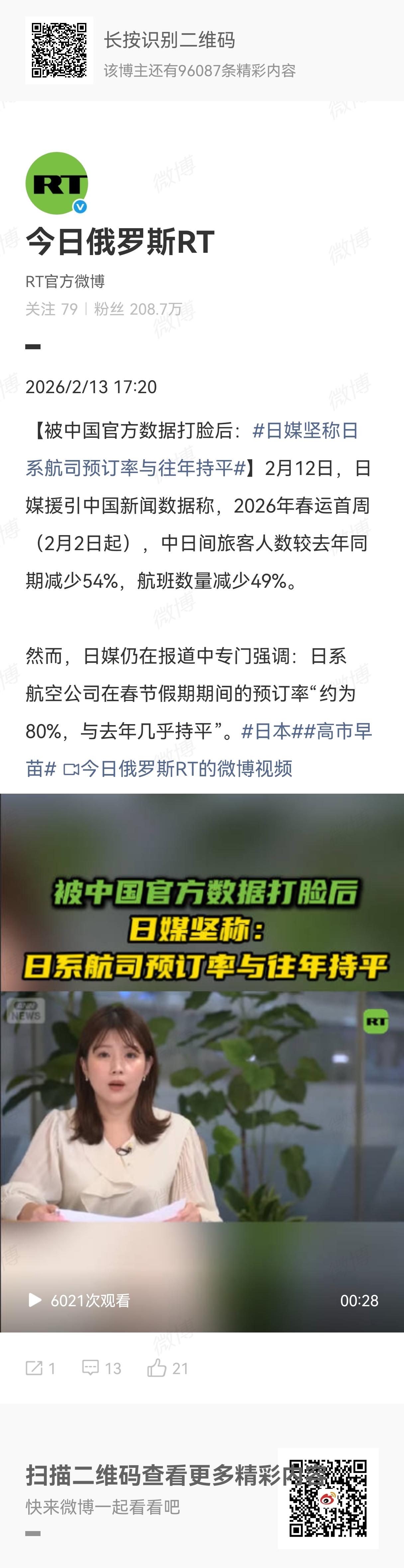今天看到网友分享的大阪街头视频,街头上的人真的少了很多,再也看不到人头攒动的情形,中国面孔更少了。日媒说的和往年机票预定率持平,那是因为中国方面的航司取消了很多到日本的航班,那些不得不去日本的人(走亲访友留学工作的),只能选择日本的航司,就相当于以前每天有100个航班,现在可能只剩下50个航班,就算剩下的50个航班满座,总数下来还是比往年少得多,这就是日媒的春秋笔法。