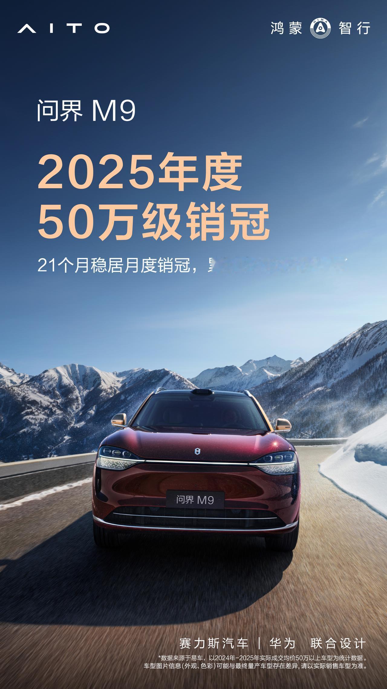 50万级标杆,用户定义! 问界M9 累计交付超27万台,21个月稳居50万级销量冠军。销量、NPS(净推荐值)、保值率全维领先。感恩信赖,共赴新程!【来自懂车帝车友圈】