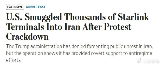 美国总统特朗普在德黑兰镇压全国抗议并切断互联网接入后,秘密向伊朗发送了约6000个星链卫星互联网终端。