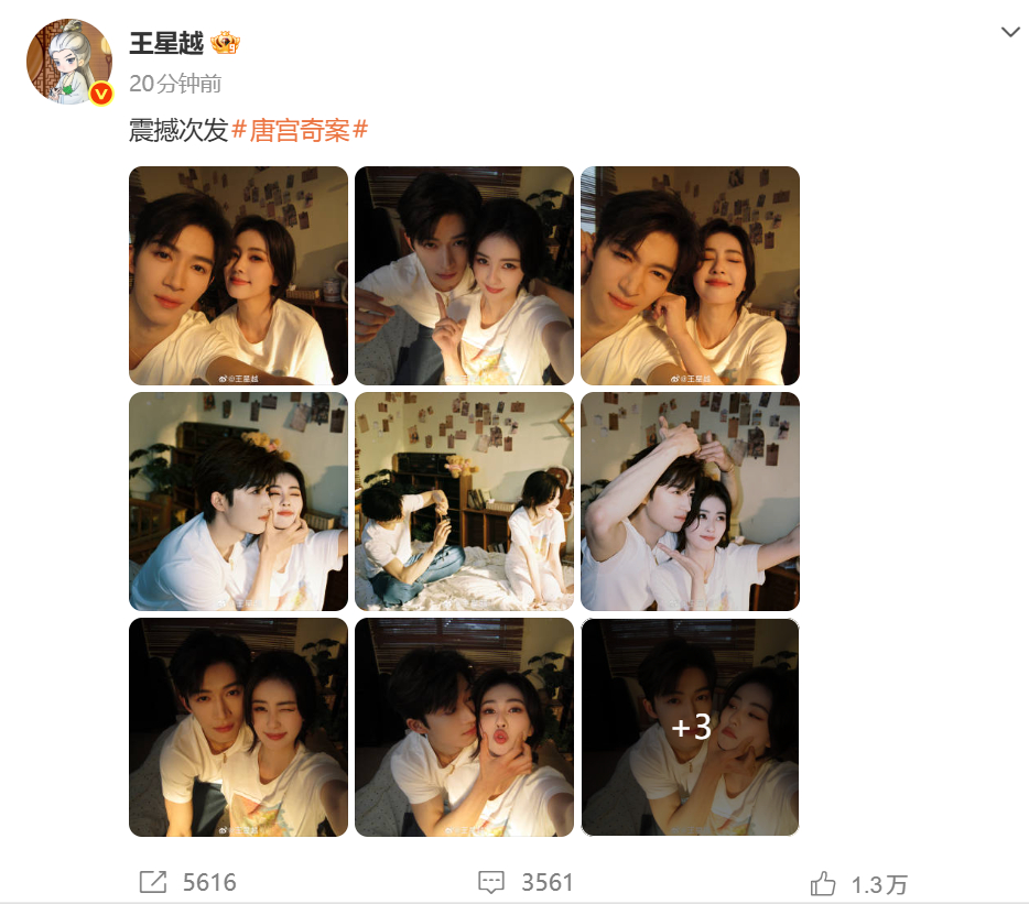 王星越发了12张和白鹿的自拍王星越一口气发了12张和白鹿的自拍,这剧宣有点太牛
