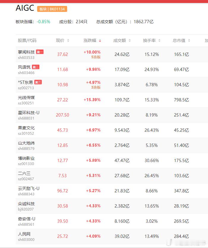 AI审核概念早盘逆势活跃,汉邦高科、国安股份涨停,视声智能一度涨超20%。此外受益版权价值重估的影视、文化传媒板块回暖,掌阅科技弱转强晋级5连板,而随着影视龙头股光线传媒强势反包午后一度逼近涨停,横店影视、博纳影业两只板块人气股快速打开跌停后展开强修复,与部分资金博弈春节档票房的传统资金记忆密切相关。