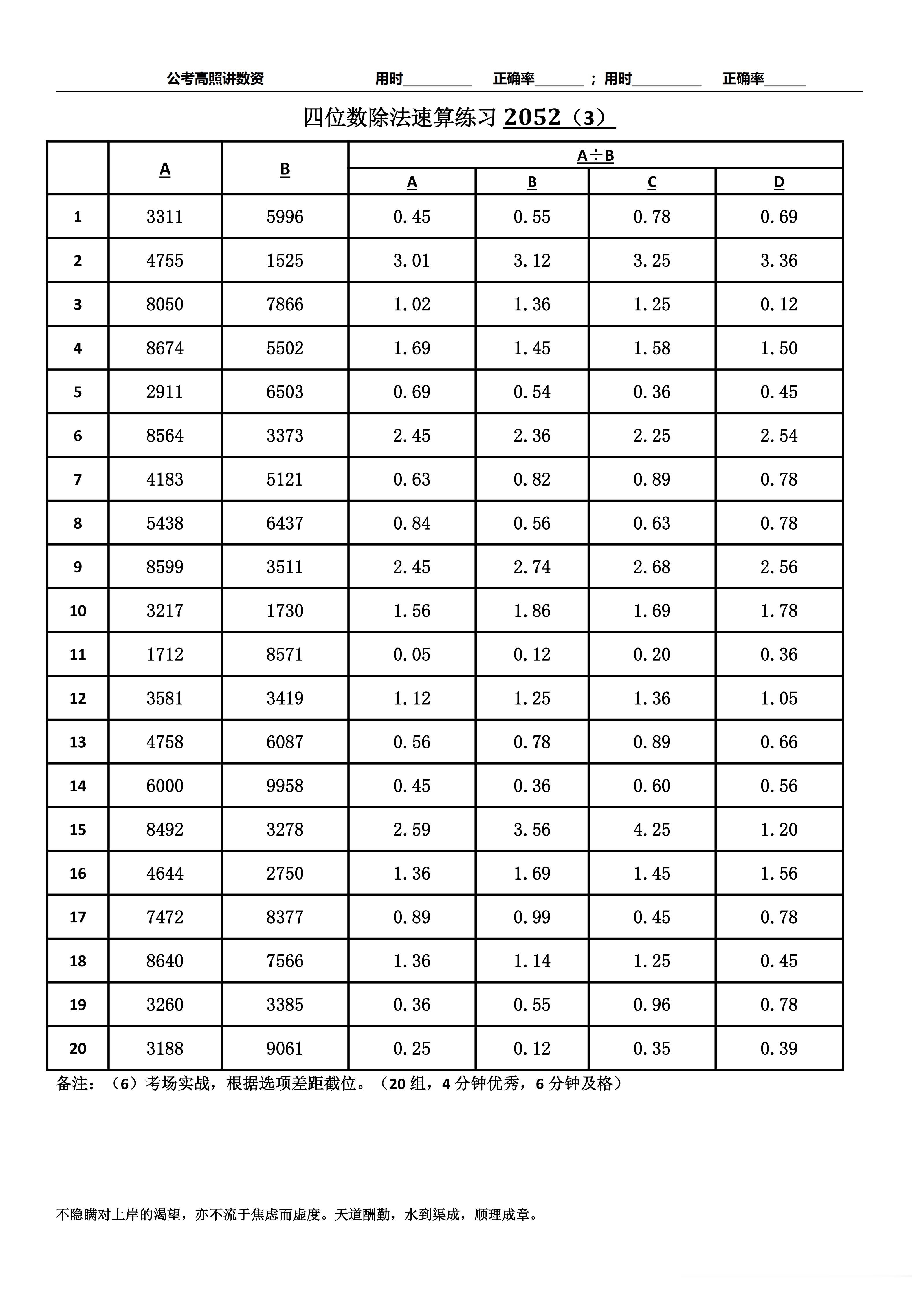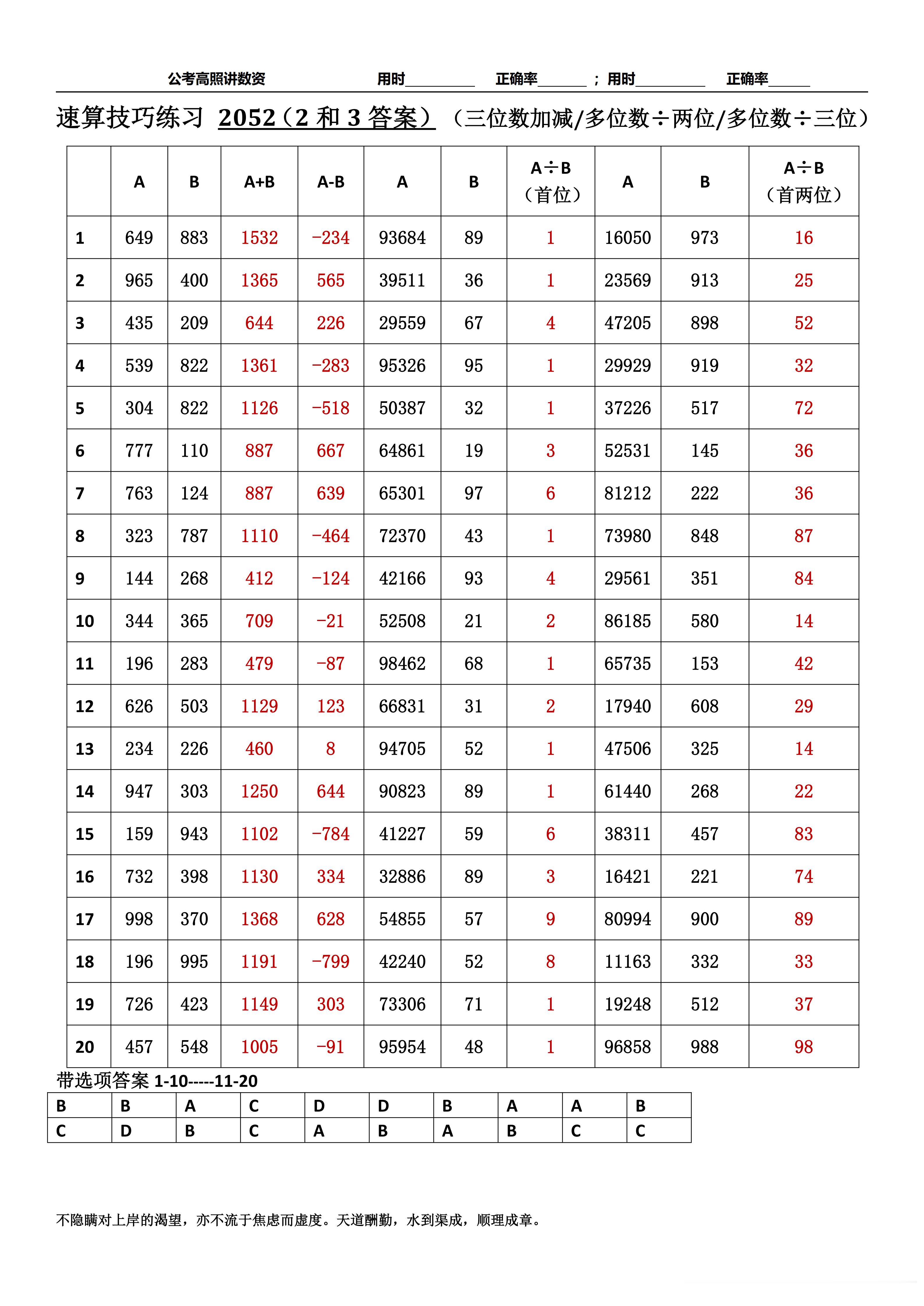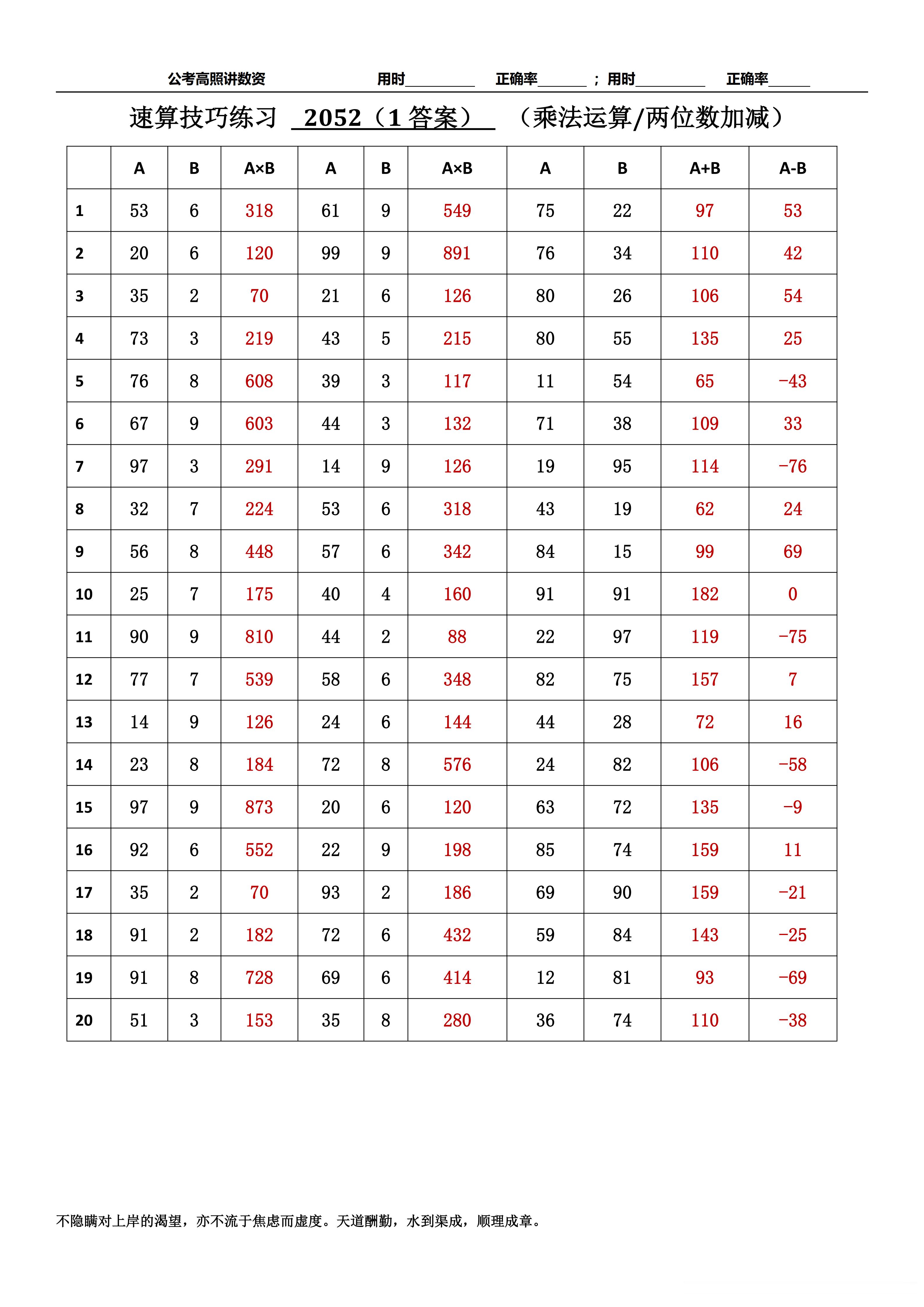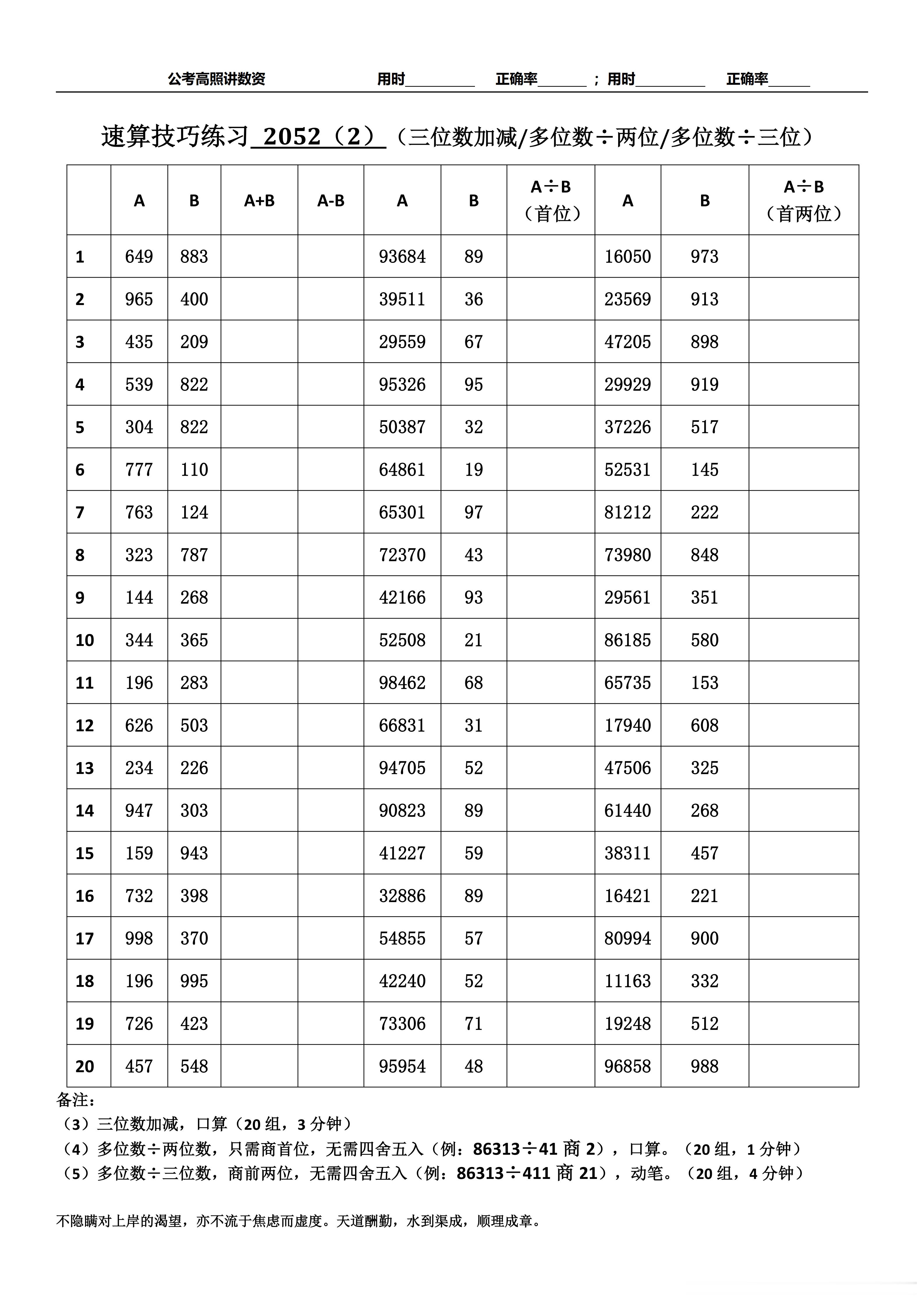 跟着高照练速算决战公考 速算练习2052