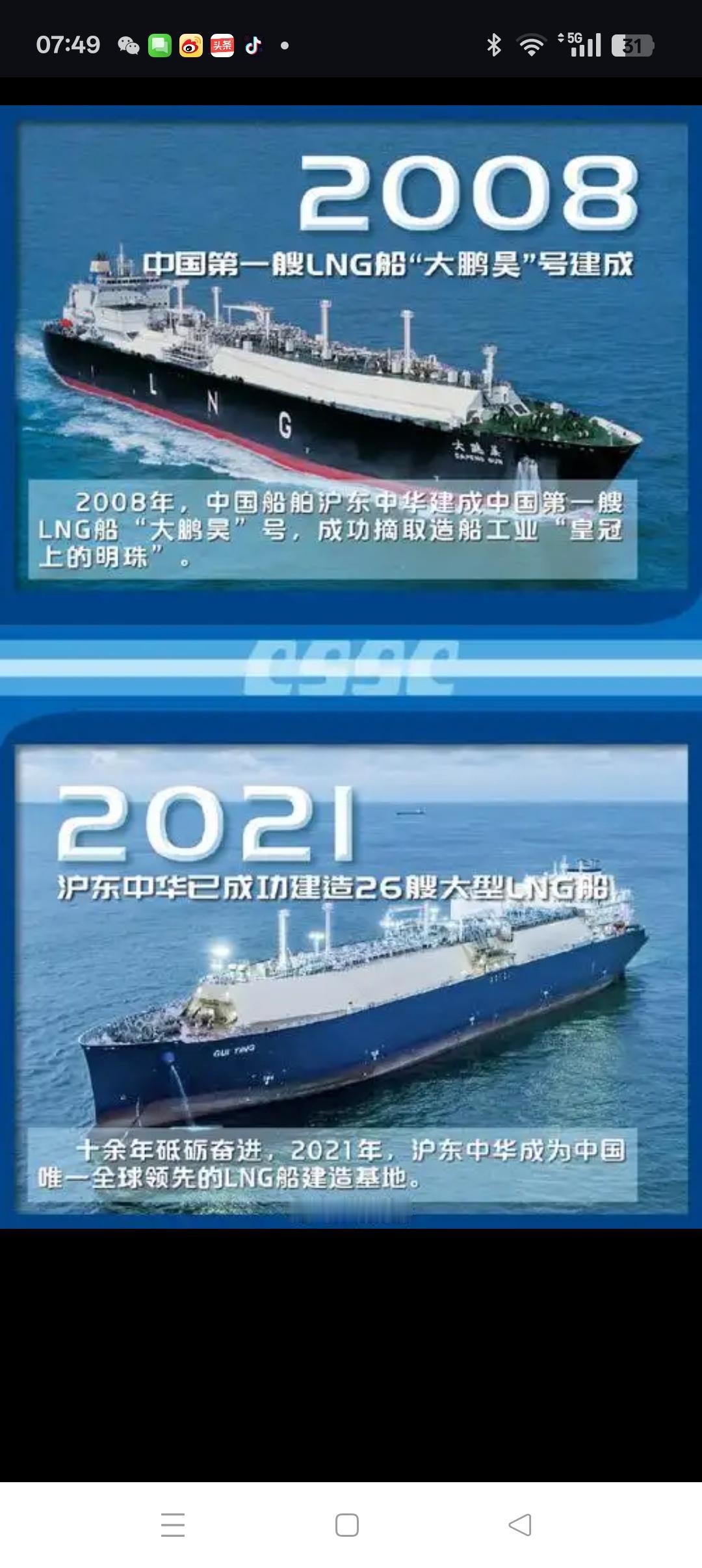 中国已集齐造船业的三大明珠 造船业常说的“三大明珠”(或称“皇冠上的三颗明珠”)是指‌航空母舰、大型液化天然气(LNG)运输船和大型邮轮‌。这三种船舶因设计建造难度极高、技术复杂,代表了现代造船工业的最高水平。‌ 它们被赋予此称谓,主要源于其超凡的技术复杂性与建造难度: ‌航空母舰‌:作为海上移动的军事堡垒,集成了舰载机起降、动力、防御、指挥等极其复杂的系统,是一个国家综合科技与工业实力的象征。‌‌‌ 大型液化天然气(LNG)运输船‌:需要在零下163摄氏度的极端低温下安全运输液化天然气,对储罐材料、绝缘技术和建造工艺要求极为苛刻,被誉为“海上超级冷冻车”。 大型邮轮‌:是“船+酒店+娱乐城”的复杂结合体,涉及数千个客房、数万公里电缆的集成,以及严格的重量控制、振动噪声管理、安全返港系统等,建造精度要求极高。 中国已全面掌握并成功建造了这三种顶级船舶: 航空母舰方面,已拥有辽宁舰、山东舰、福建舰等国产航母。‌‌‌ 大型LNG运输船方面,自2008年交付首艘国产船“大鹏昊”以来,已实现批量建造并达到全球领先水平。‌‌‌ 大型邮轮方面,首艘国产大型邮轮“爱达·魔都号”已于2024年商业首航,第二艘“爱达·花城号”也即将交付。‌‌‌ 这意味着中国已集齐造船工业的“三颗明珠”。同时,中国造船业在规模上也连续16年保持完工量、新接订单量、手持订单量全球第一。‌‌‌