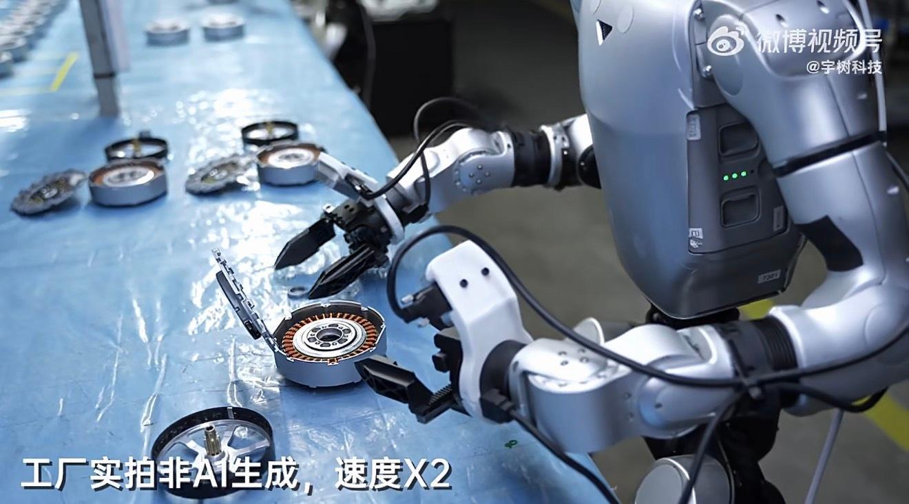 宇树机器人已经部署在宇树的产线上做组装和分拣了,机器人成熟的第一步自己生产自己!
