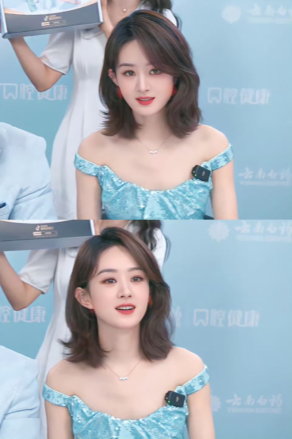 赵丽颖.单看也没什么,可跟人多在一起合照,她的脸好小,眼睛好大,很美。