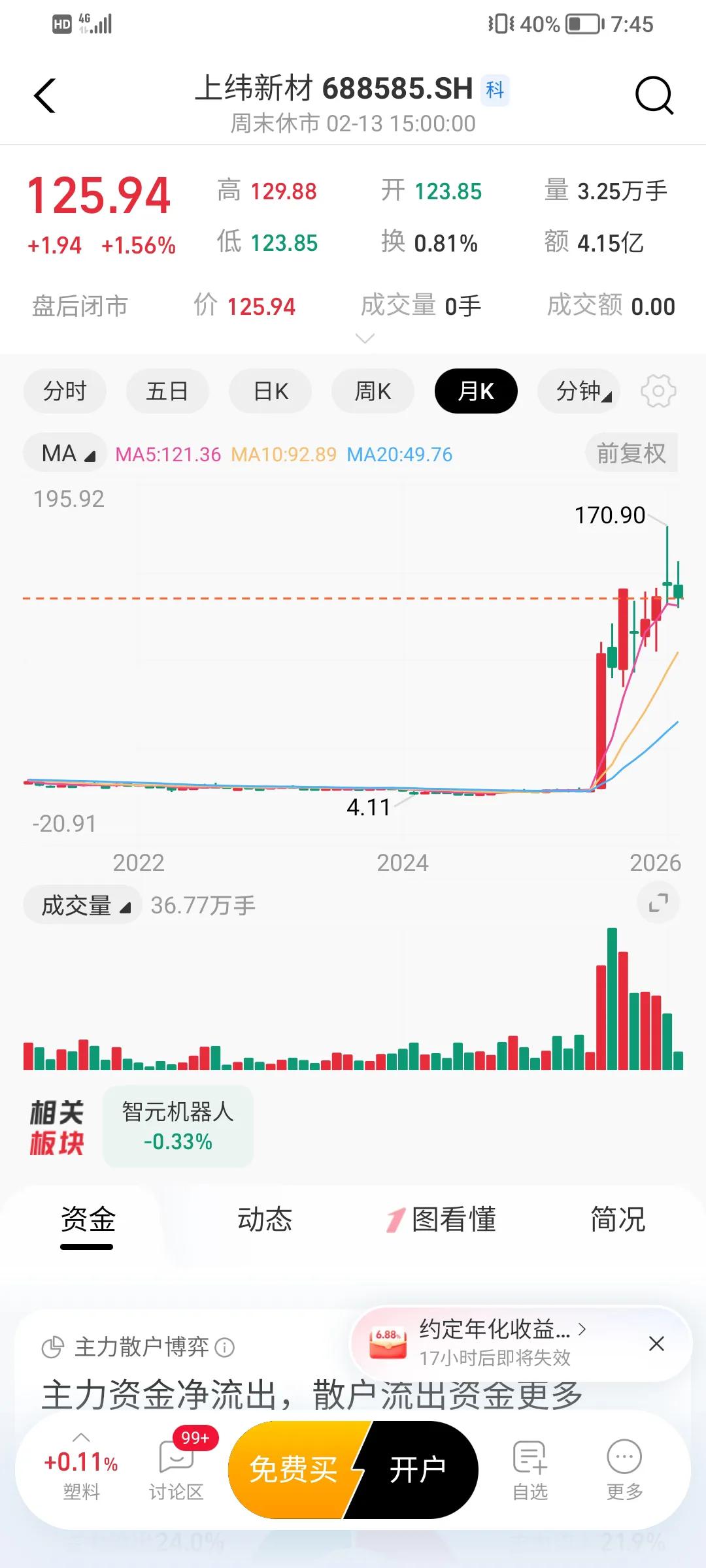 去年上纬新材以1836.53%的涨幅霸榜A股,由仅4元的股价涨至最高170,看来买低价股也会蕴藏大机会,永远不要小看低价股。