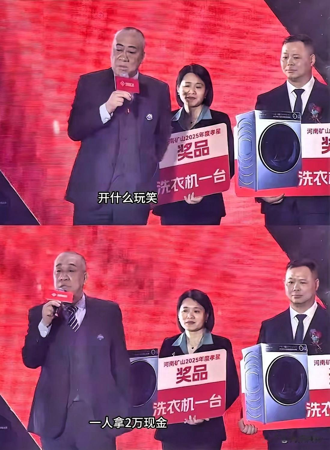 年会发洗衣机被老板当场骂醒!每人再加2万! 谁买的洗衣机?往年都是金项链!河南矿山崔培军年会当场发飙,直接给员工每人加2万奖金。我越看越服气。 真金白银不玩虚的。利润2.7亿拿出1.8亿发年终奖。把员工当家人,员工才会把企业当家。 我始终觉得,人赚不到认知外的钱。老板有大格局,舍得让利,路才越走越宽。 你们遇过这么敞亮的老板吗?