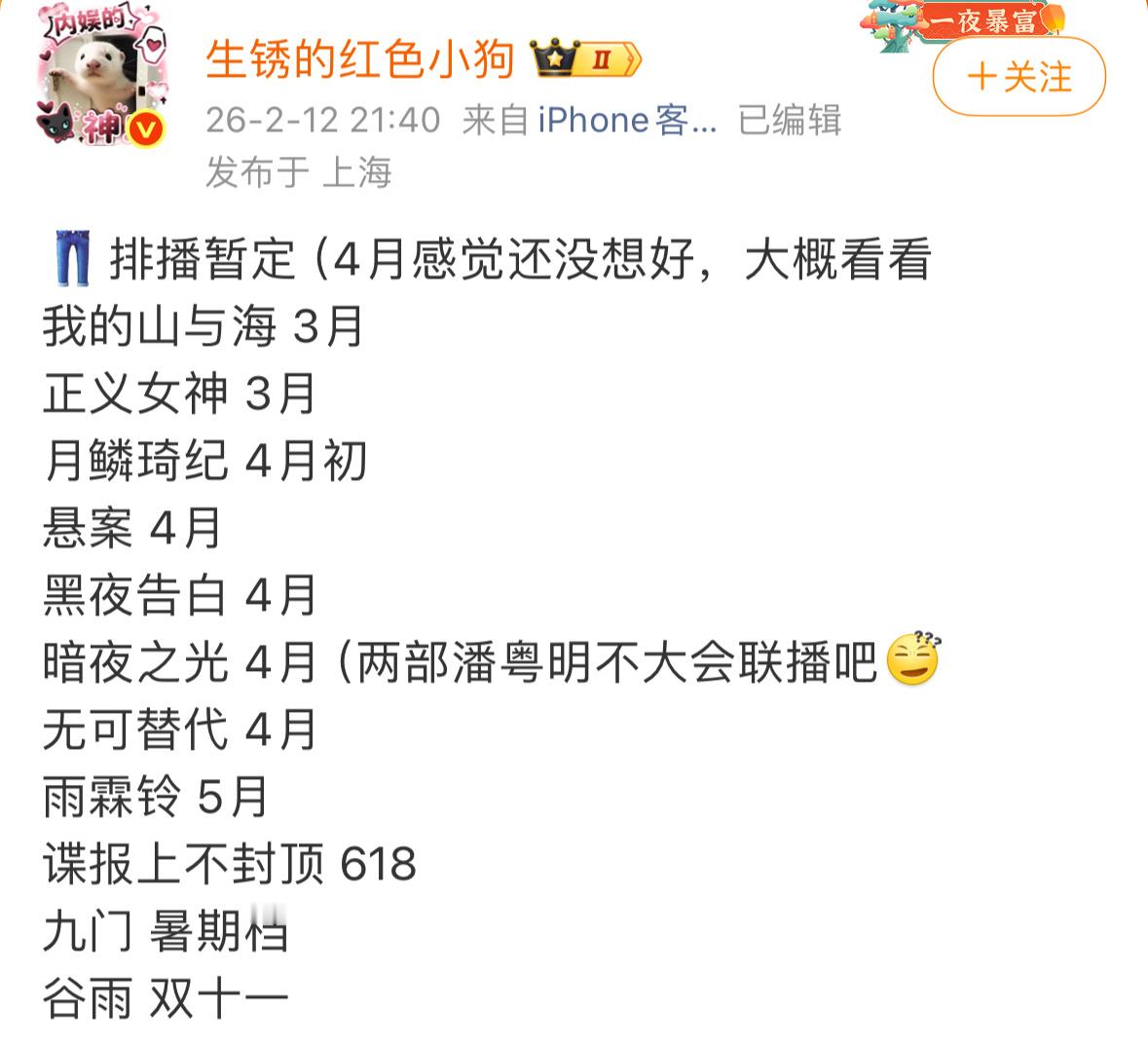 优酷的排播,雨霖铃和九门应该播的不错