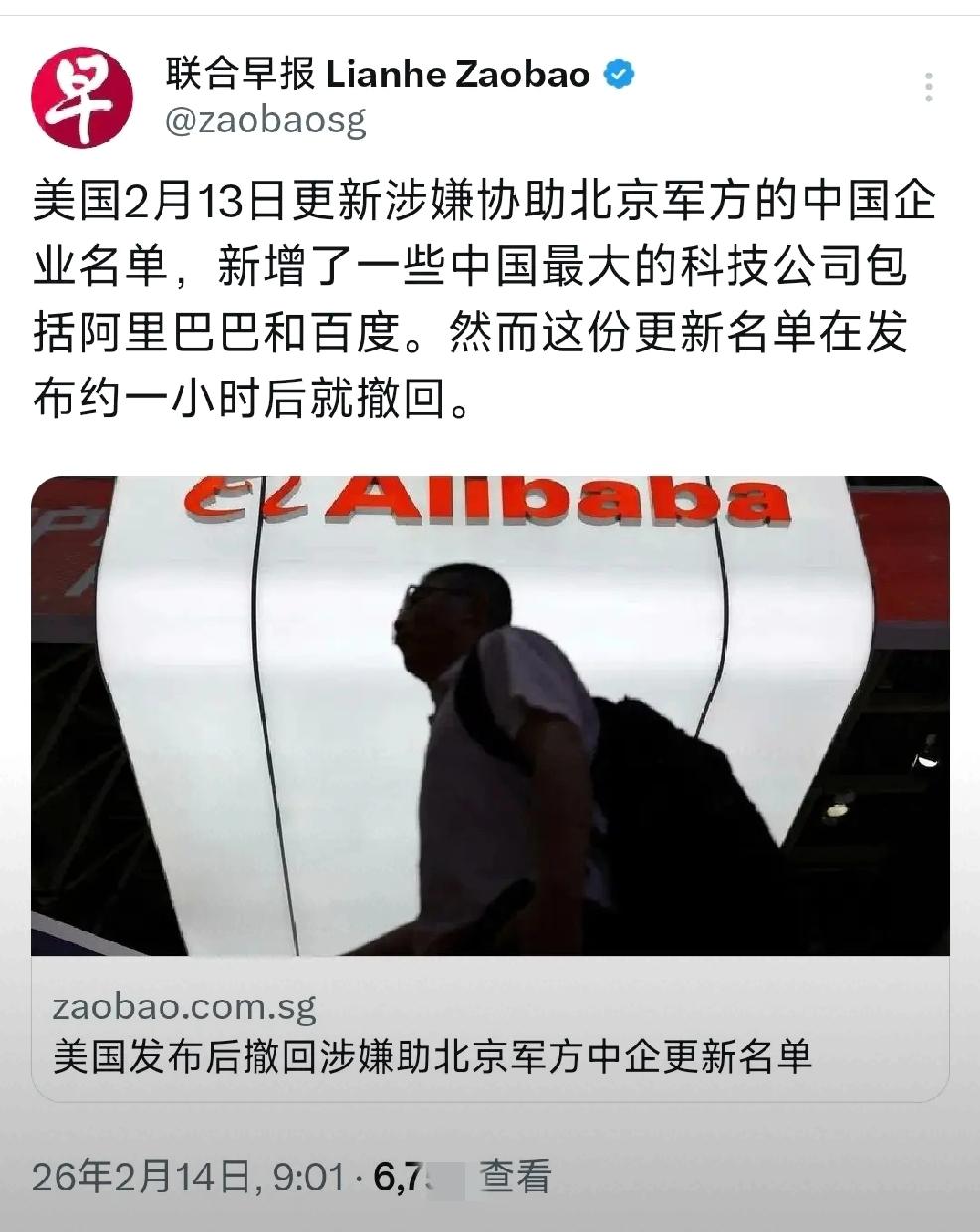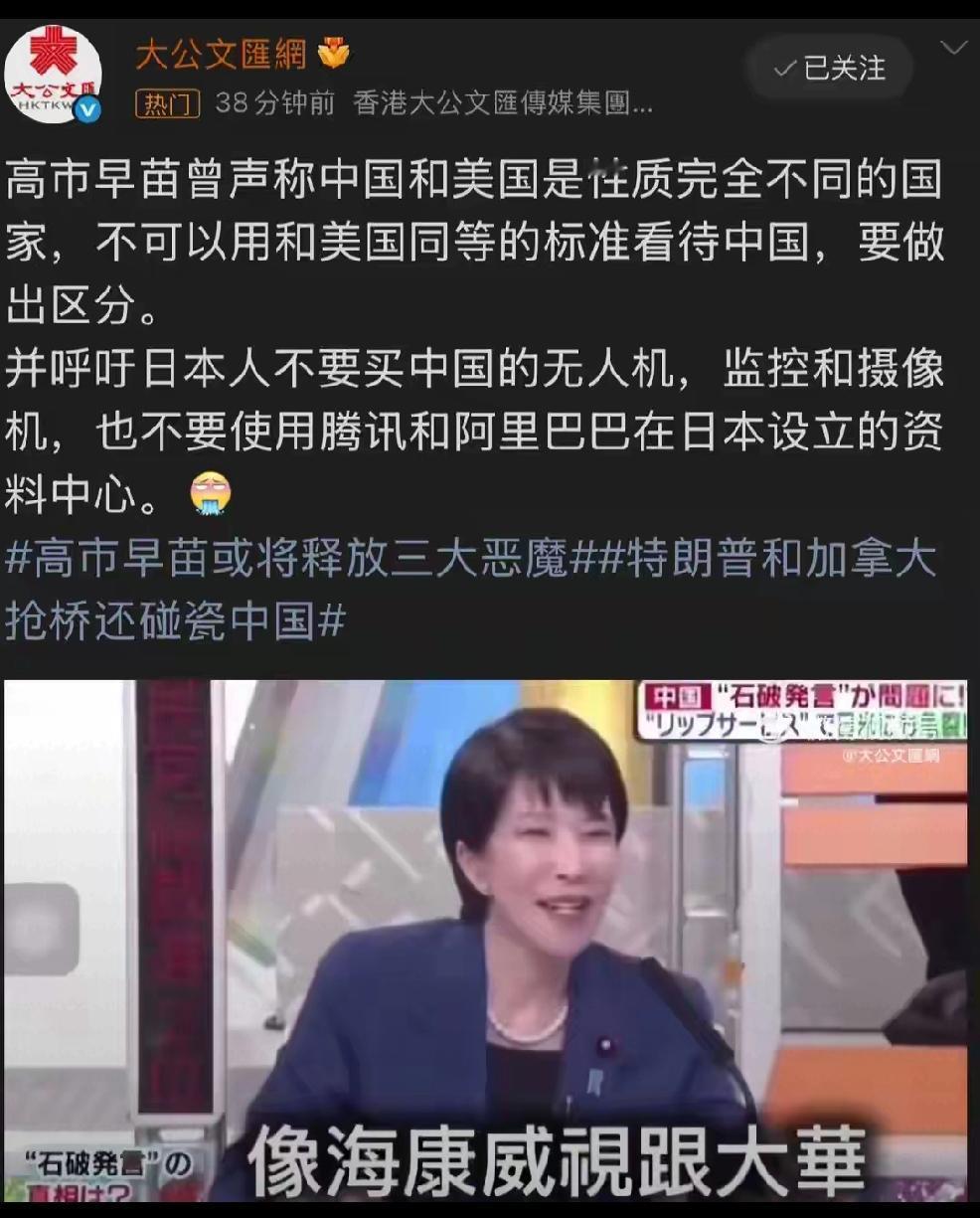 2月14日,新加坡联合早报发文:“美国2月13日更新涉嫌协助北京军方的中国企业名单新增加了一些中国最大的科技公司,包括阿里巴巴和百度然而,这份更新名单在发布约一个小时后就撤回。” 近几日,日本高市早苗宣称:“中国和美国是性质完全不同的国家,不可以用和美国同等的标准看待中国,要做以区分,并呼吁日本人不要买中国的无人机,监控和摄像机,也不要使用腾讯和阿里巴巴在日本设立的资料中心 。” 个人认为:这是不经意,偶然,不要曲解,这些词汇不足以掩盖,美国和日本步调一致的封杀,中国科技公司的阴谋。 日本人是滔天的杀心与恨意,对待中国企业。 美国人则是按照特朗普的套路,无中生有,把这视为与中国谈判的筹码。个人认为:美国根本就没有谈判的筹码与资格,所以只能靠指鹿为马,无中生有,蓄意耍赖,胡搅蛮缠,下三滥的招式来对待中国。 美日同盟妄想用莫须有的罪名,实现唯利是图,反复无常,绞杀中国的预谋。 美日同盟,痴心妄想