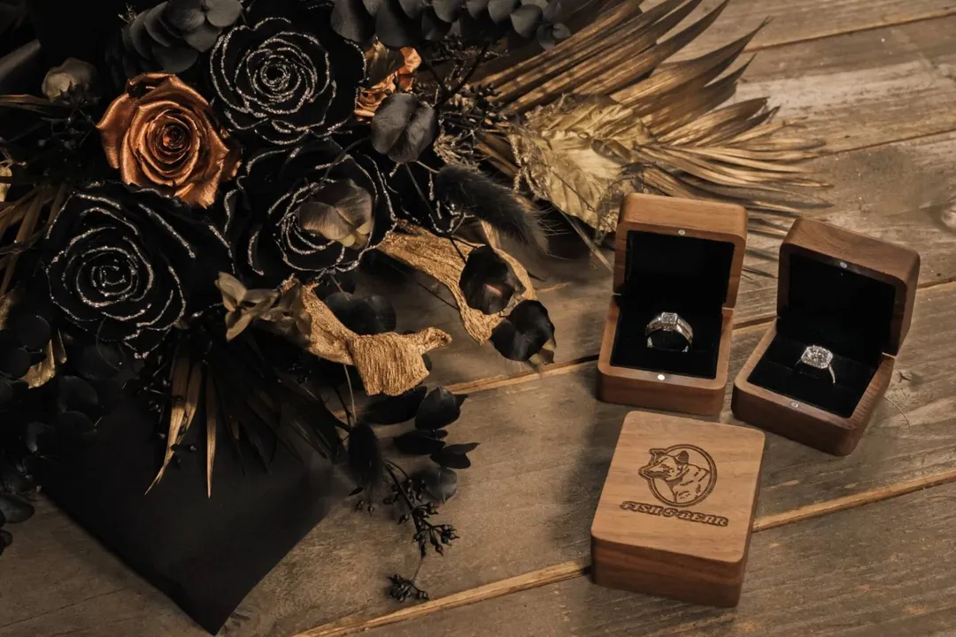 婚戒由经纪人Fish亲自操刀设计,以八角为造型概念,夏宇童透露:「八角象征家庭的和谐与永恒的存在。」这对戒指同时也是以人与宠物为名的培育钻石品牌「FISH5BEAR」首件作品,对两人而言更具纪念意义。