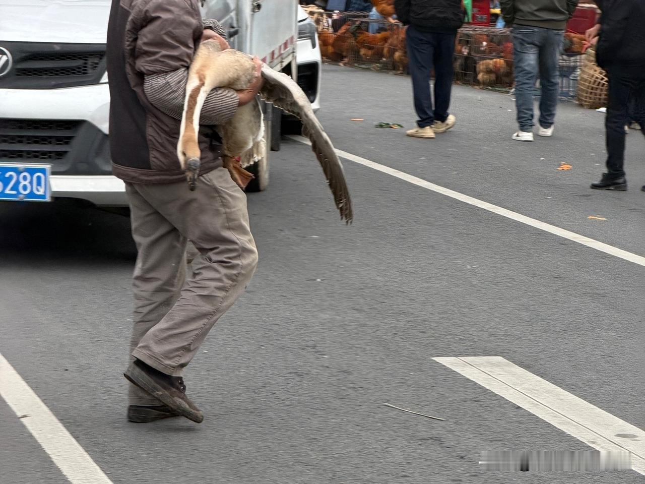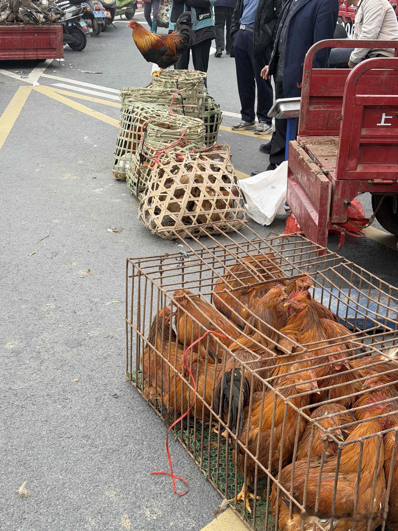 过年前的南宁良庆圩日,比以往更热闹,马路边临时摆的鸡鸭鹅摊一个挨一个,毛色油亮,嘎嘎叫着,讨价还价。 路过的几乎人手提溜一只,有的用绳子绑着脚,有的直接塞蛇皮袋里,只露出个脑袋。那场面,满满当当都是广西人过年的味道——过年餐桌必得有这么一口自家养的、现宰的鲜货,这才叫过年嘛! 南宁身边事