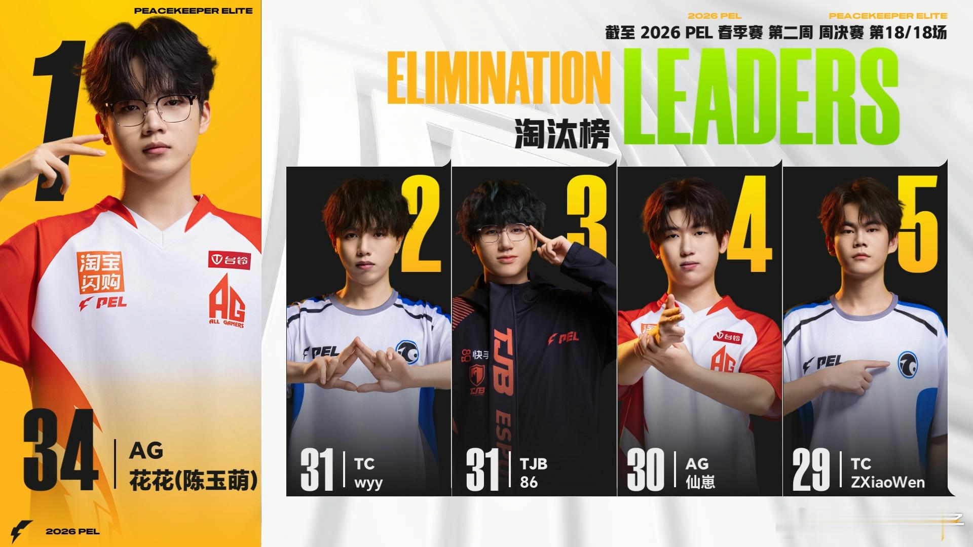 PEL春季赛第二周最佳阵容AG花花再夺淘汰王 PEL春季赛第二周最佳阵容公布。和