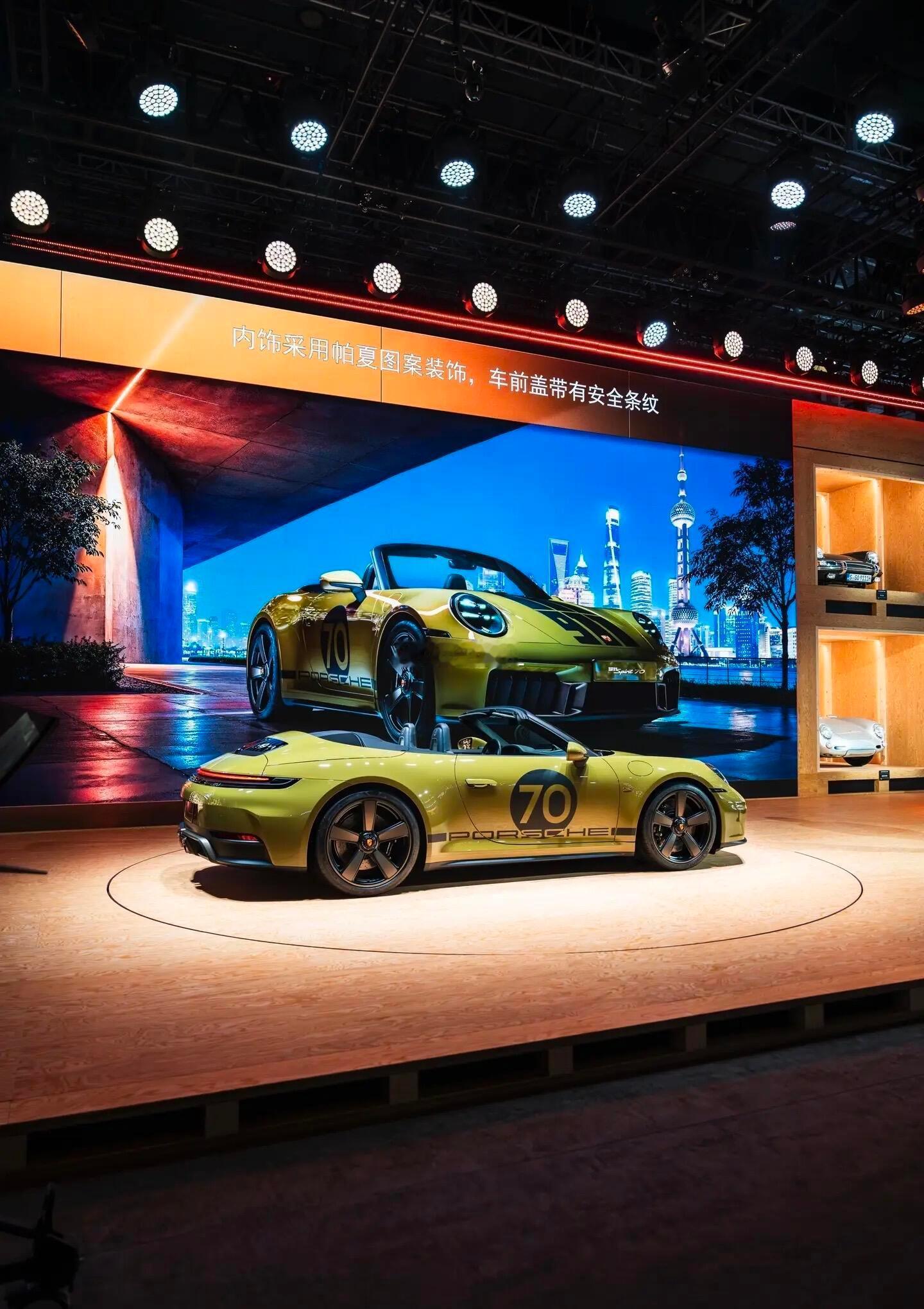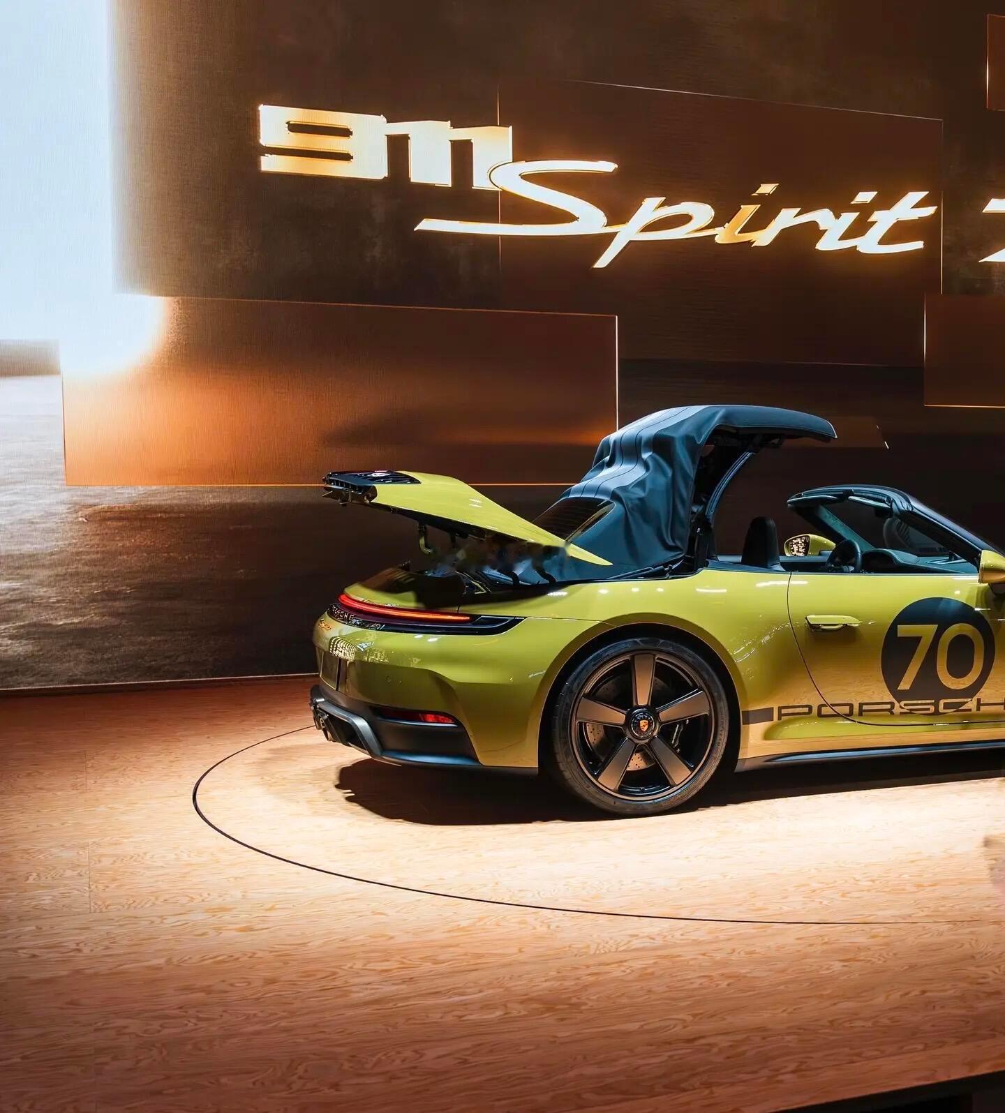 保时捷第三款Heritage Design车型——911 Spirit 70首发,中国市场售价为266.8万元起。该车基于2025款911 Carrera GTS Cabriolet车型打造,全球限量1500辆。外观方面,911 Spirit 70采用了深橄榄绿车身涂装,搭配青铜灰色饰条、黑色软顶以及引擎盖上的三条缎面黑条纹,同时配备Fuchs风格轮毂,特别设计的保时捷车标致敬1963年原版。侧面PORSCHE字样标志及个性化“发车编号。两侧翼子板带有金色Porsche Exclusive Manufaktur徽标。内饰方面,新车将动态棋盘图案融入内饰设计,仪表组融合经典设计与先进技术12.65英寸高分辨率显示屏,具有模拟风格的白色指针和刻度标记绿色数字。动力方面, 搭载带电动涡轮增压器的3.6升水平对置六缸发动机,配合带集成电机的8速保时捷双离合传动系统(PDK),最大功率可达398kW(541PS),最大扭矩610牛·米。保时捷911