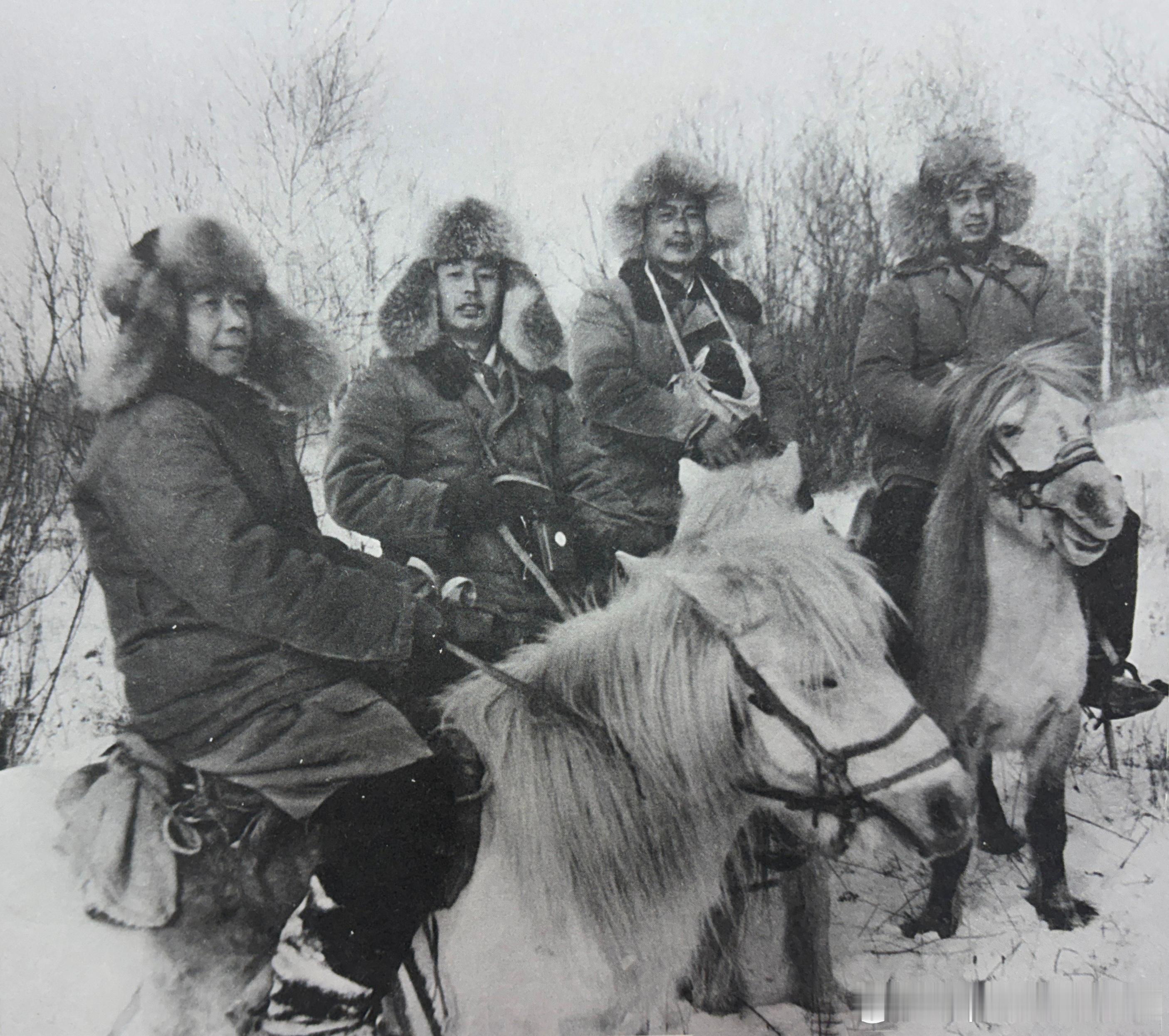 1965年周恩来指示文化部,让北京电影制片厂拍摄一部大型彩色纪录片,并亲自定名为《百万知识青年上山下乡》,谢铁骊受命拍摄此片,后因故未能最终完成。这是谢铁骊(左一)与杨启天(左二)、郝富庭(左三)、马少孔(左四)在黑龙江哈尔滨市鄂伦春寻找知识青年驻地历史影像