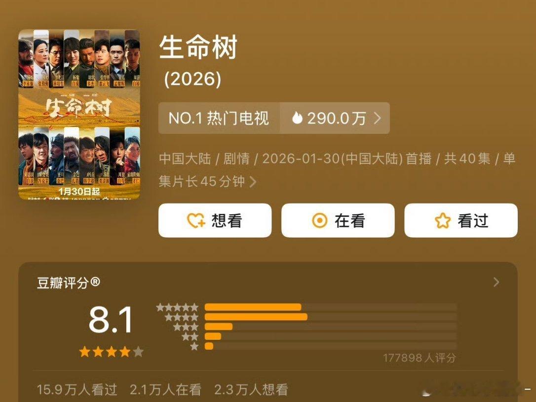 杨紫《生命树》豆瓣开分8.1分,评论人数17+,符合预期吗?