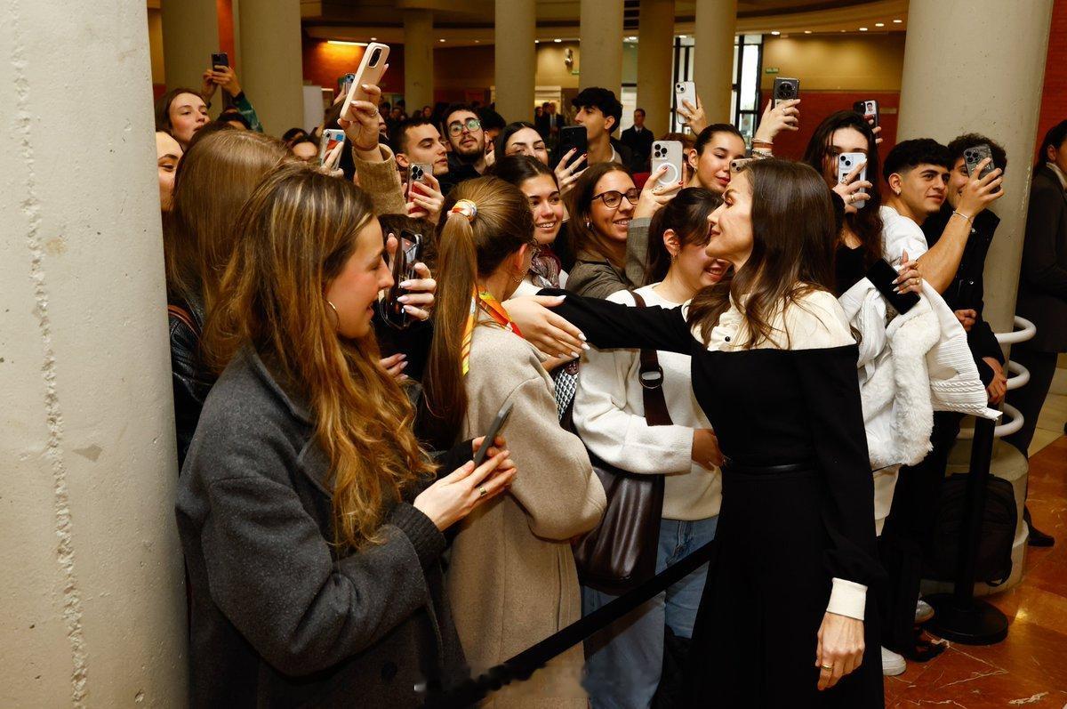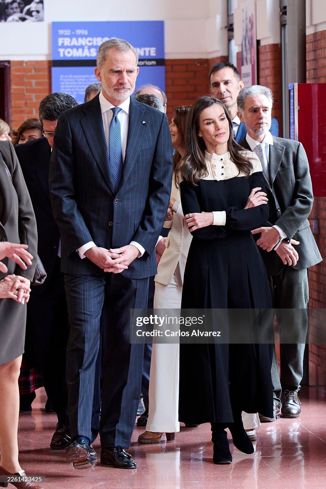2.13 西班牙国王菲利普六世和王后莱蒂齐亚参观展览,小莱连体裤来自Teresa Helbig