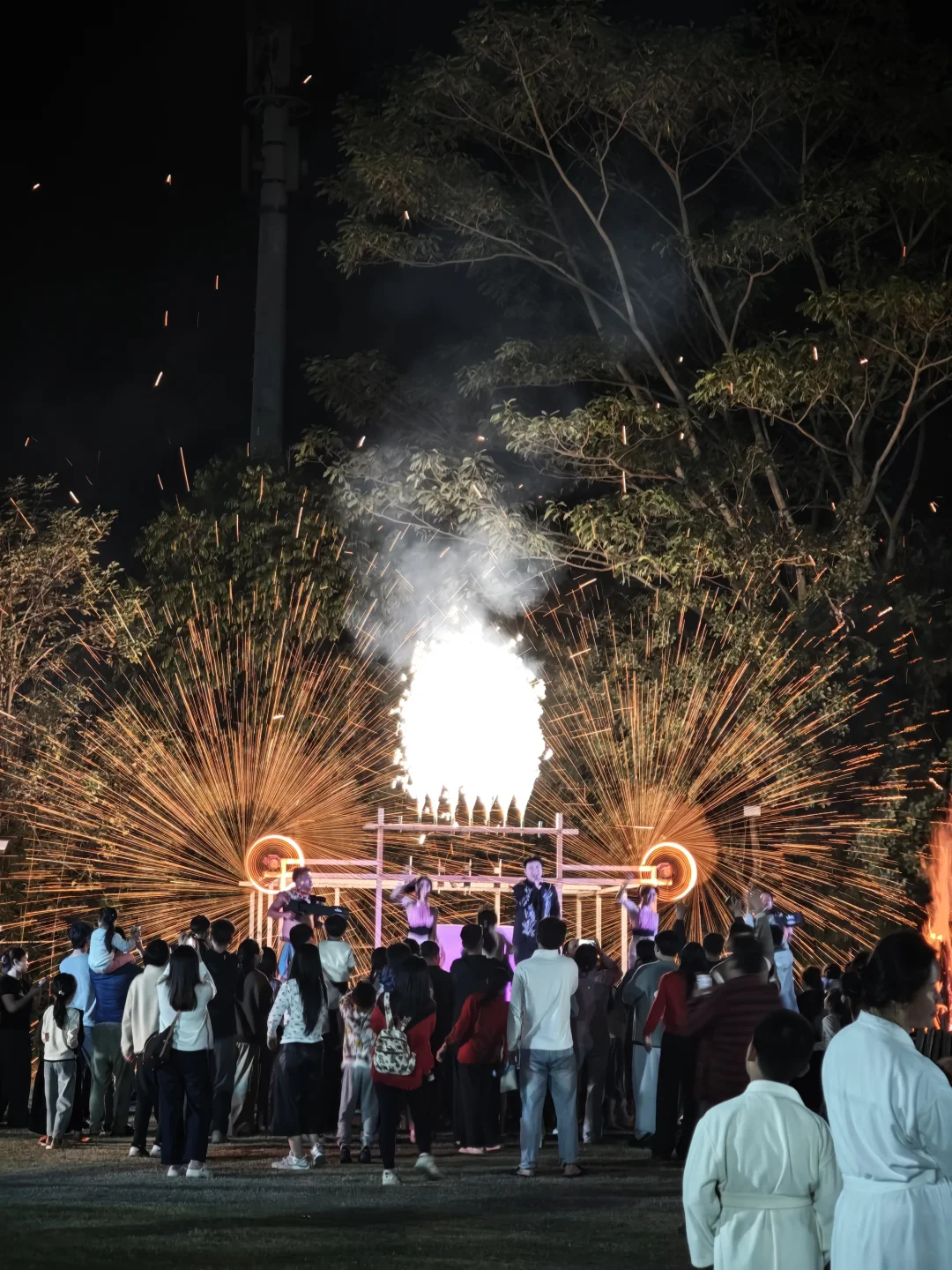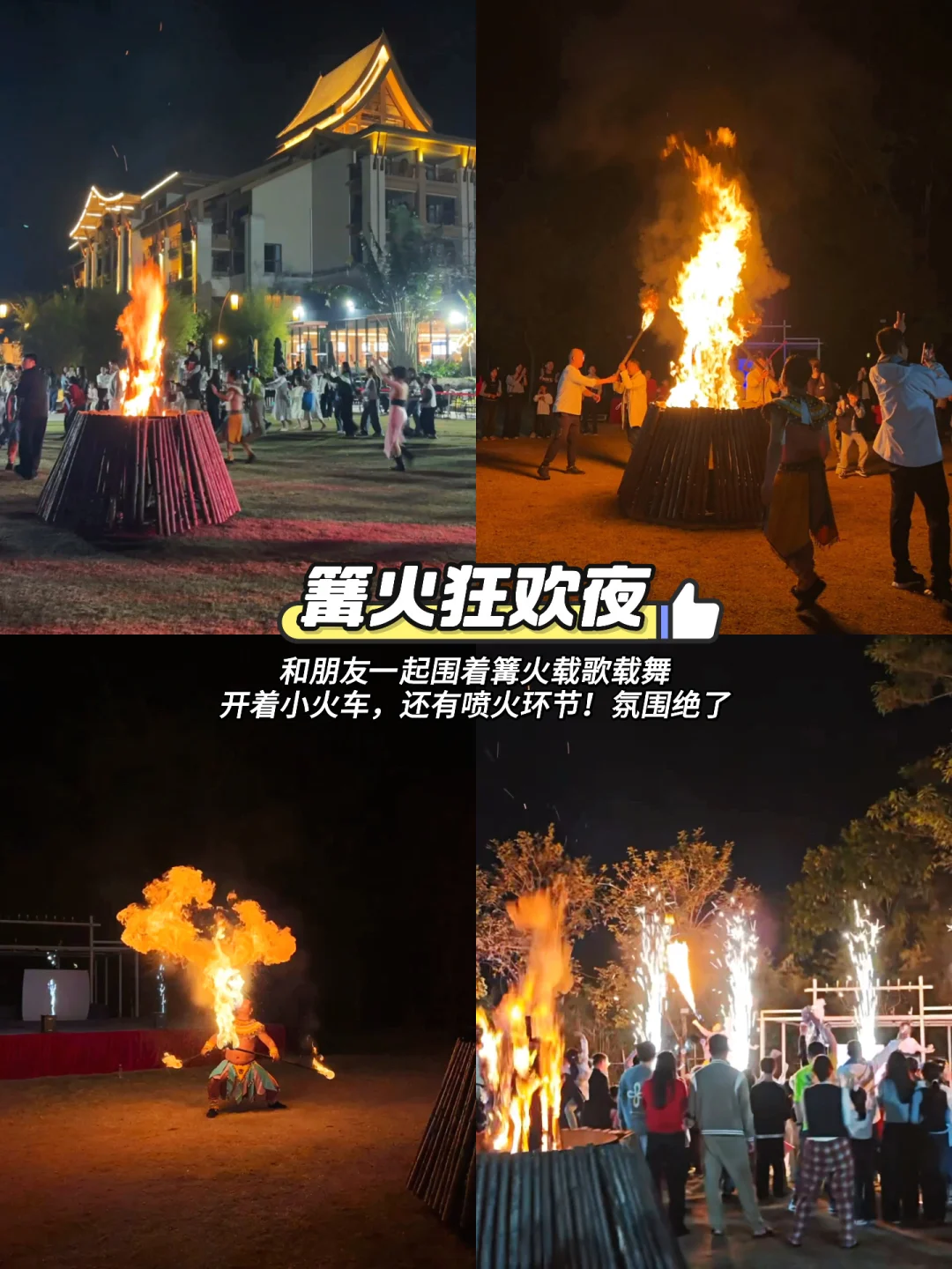 围着篝火载歌载舞🎉,开着小火车,氛围绝了‼️