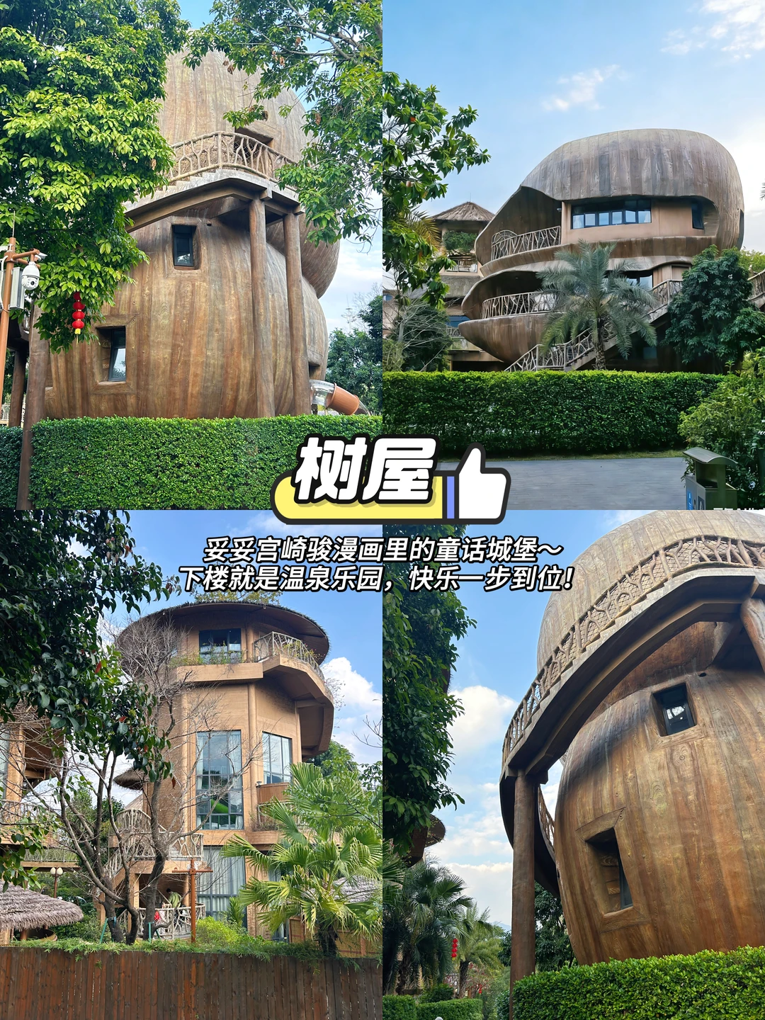 ☑️树屋🌳:妥妥宫崎骏漫画里的童话城堡🏰下楼就是温泉乐园