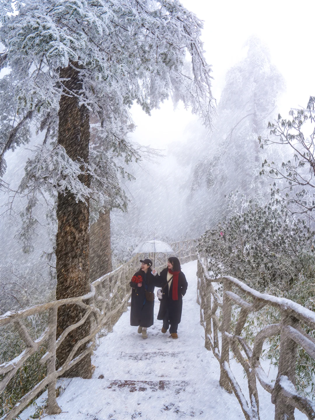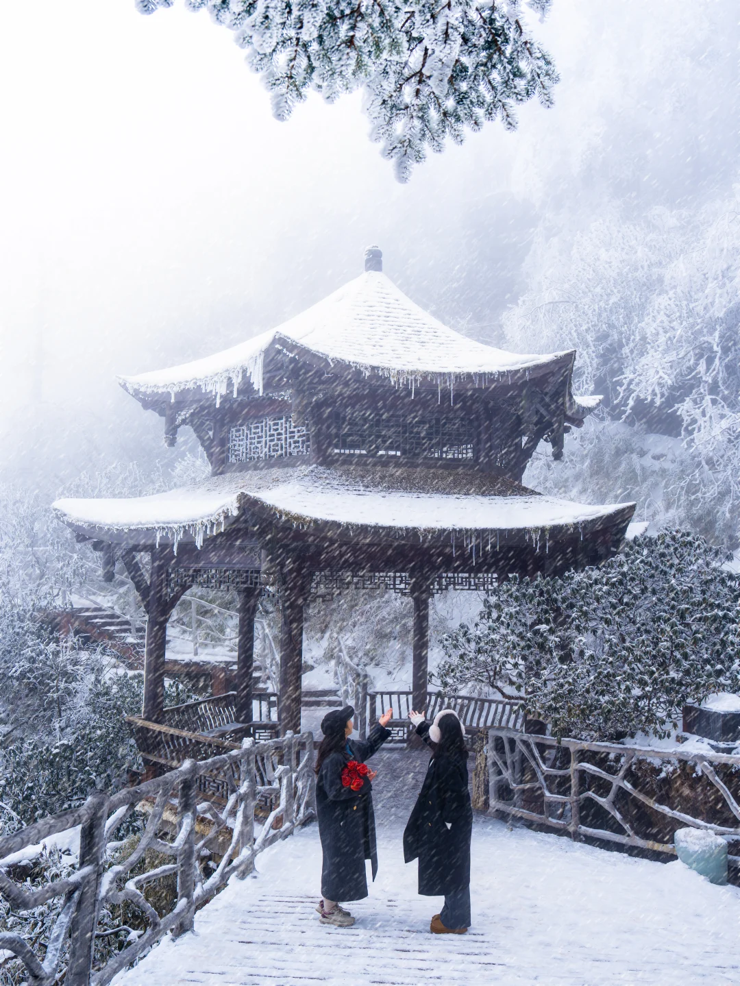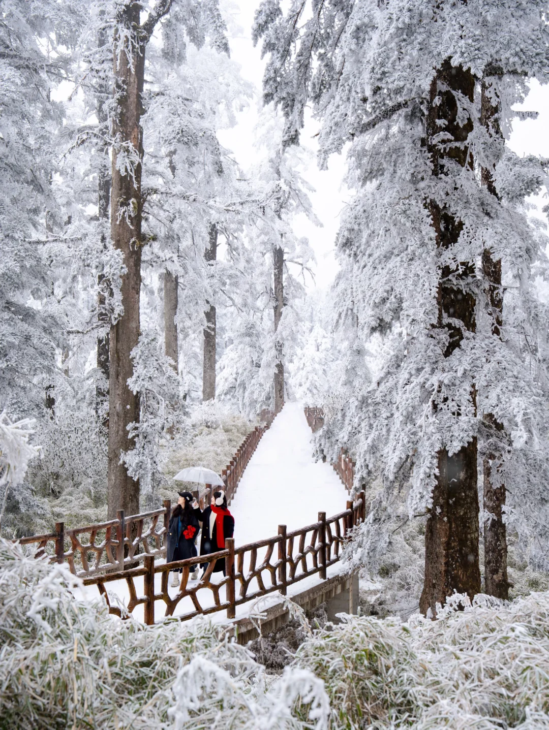 👉亲子休闲线:金花桥索道→古佛坪索道直达山顶→杜鹃园拍雾凇→逍遥桥打卡→鸳鸯池玩冰看倒影→象尔山庄玩雪→轻松返程,全程栈道平缓主打一个悠闲赏景