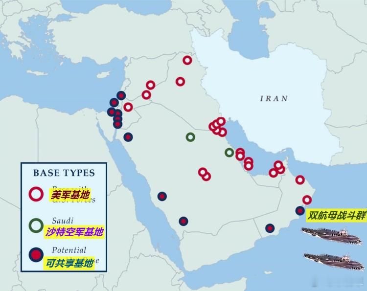 图1:感觉美联社昨天的这篇报道,是对特朗普玩“激将法”;图2:就算来两个航母战斗群,若海湾国家怕伊朗报复不敢提供基地和领空,那美军的空袭强度和进攻方向就会受到制约——无法形成大范围、高强度的空中打击效果。届时特朗普就会被嘲笑为虚张声势哦。