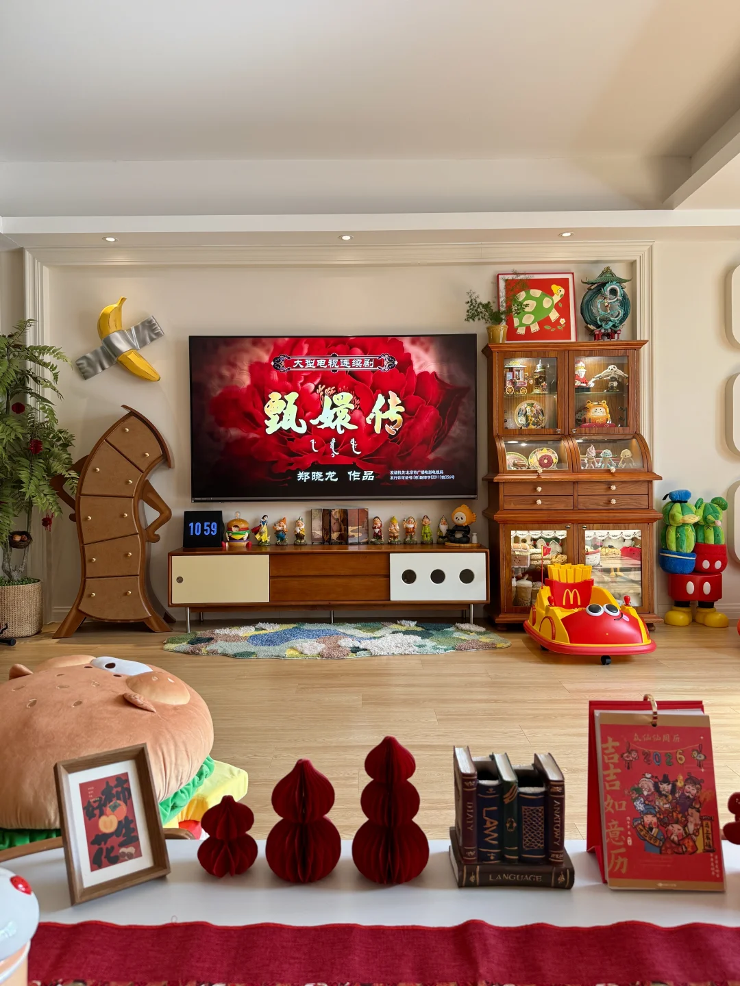 27岁不出门上班宅家工作的第5年🧨 有存款不结婚不生娃 把200平原木风小家改造成新年主题游乐园🎠 可以随心所欲布置家里,没有各种烦人的人际关系 窗外有绿树,被喜欢的玩具包围~ 祝大家马年快乐,岁岁常欢愉,年年皆胜意🧧