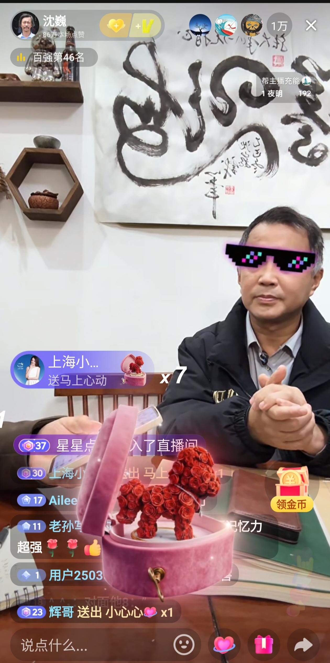 沈巍2月14日晚上情人节自己开直播了,小齿轮管理,女嘉宾相伴,直播间1万+,人气不错,礼物满天飞。网络连线老六荒野七星山半个多小时,这是个探索荒野求生者,沈巍还喊对方龙哥,龙哥说不能这么喊我,你就喊我龙宝宝,他问沈老师有女朋友没,沈巍说“女性朋友很多,至于你们所指的那种我用行动证明了,不用说大家都知道。”