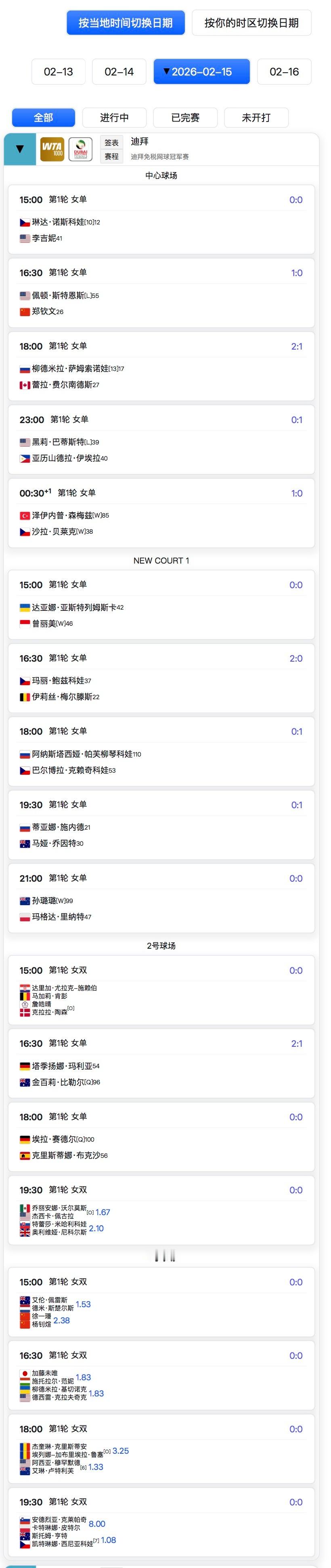 郑钦文连续两年迪拜对阵斯特恩斯wta迪拜1000赛郑钦文vs斯特恩斯