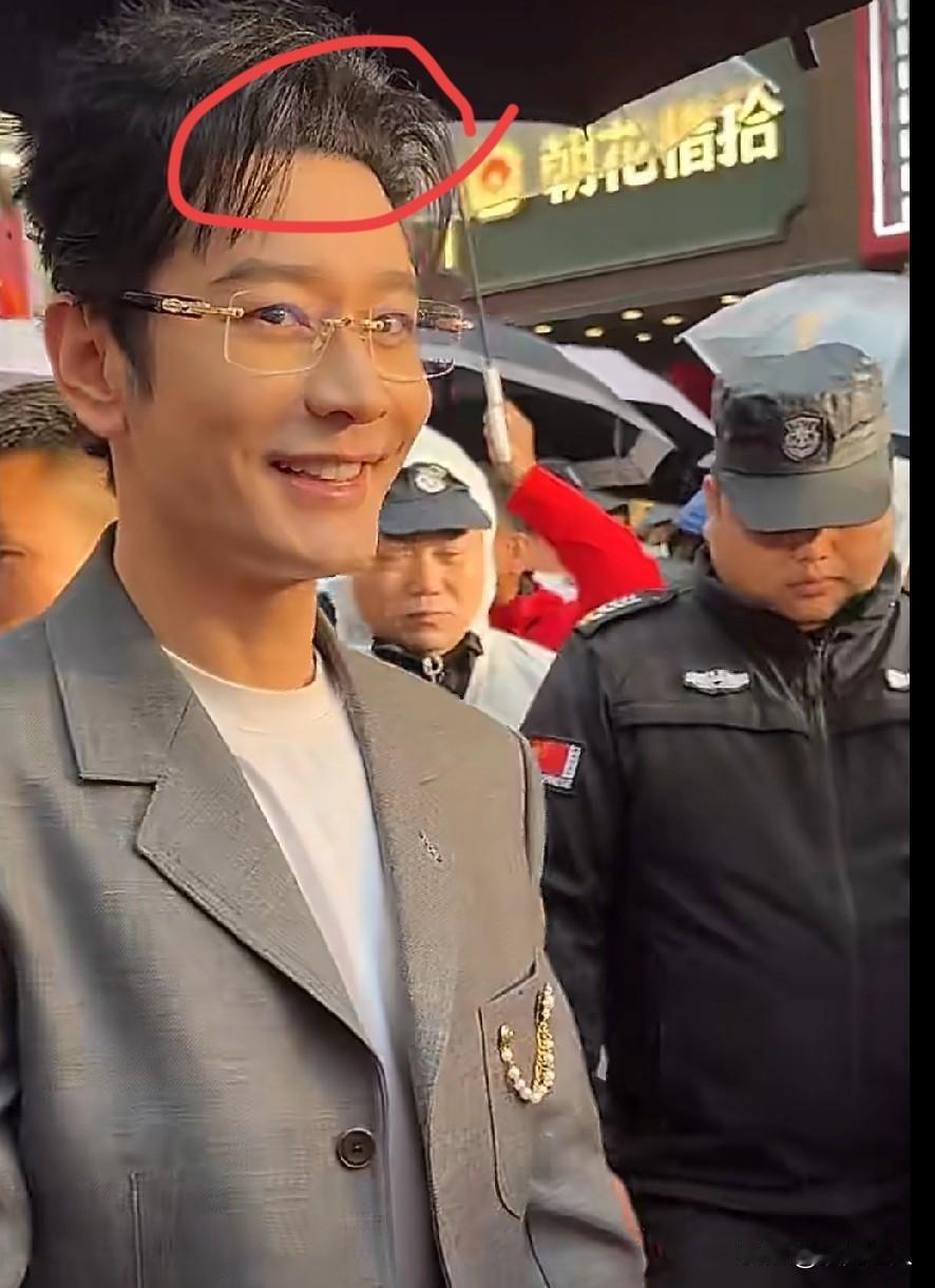 46岁的黄晓明在长沙冒雨工作,雨下得还挺大,他依旧很敬业,挨个跟粉丝握手,态度特别真诚。可大家最操心的不是他淋没淋雨,而是一直惦记着他的假发套,评论区全在喊:哥,可别让假发掉了! 其实这假发跟了他好多年,早年拍古装戏经常剃头,发际线慢慢就扛不住了。网友眼尖得很,连后脑勺的分界线都能看出来。之前还有个小孩不懂事,当场伸手去扯,他疼得一哆嗦,还笑着说没事,一点没生气。 人到中年,尤其是男人,有时候就想守住这点体面,头发就是其中一样。被大家调侃、开玩笑,他也不恼不躲,大大方方接着。 其实真正的帅,从来不是头发多不多、脸嫩不嫩,而是就算被人戳中小尴尬,也能坦然面对,不装不绷,这份从容,比什么都耐看。