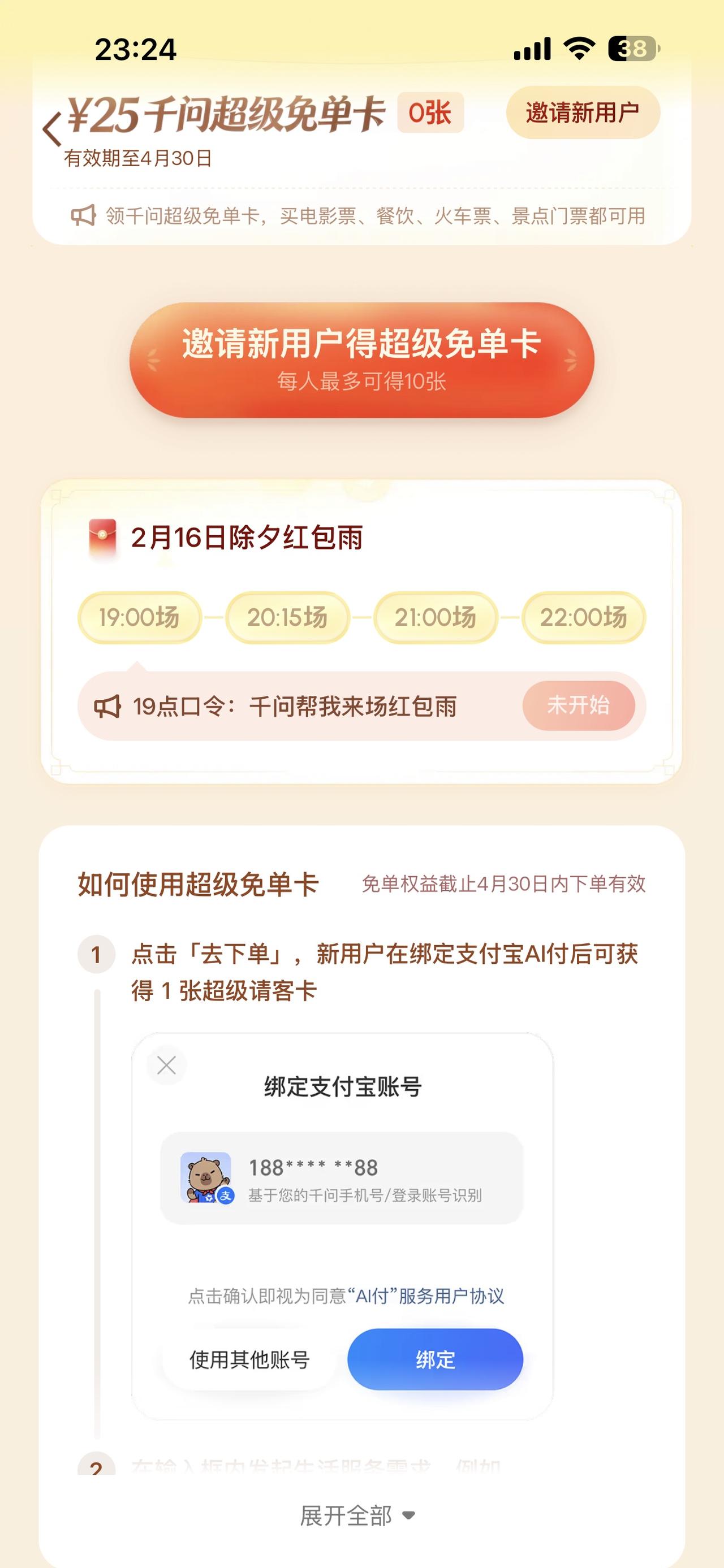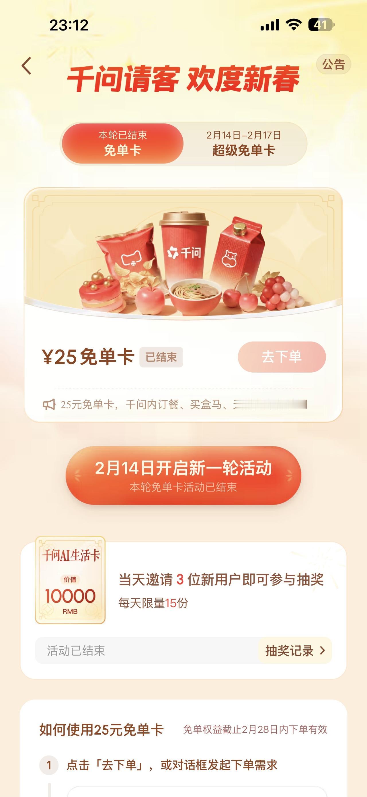 近段时间千问的免单券讲真挺败好感,之前几天都用不了,现在又弄半天都不给券,背靠淘宝大厂这种基础问题都要那么久来修复和完善,反正我是很难理解。。。