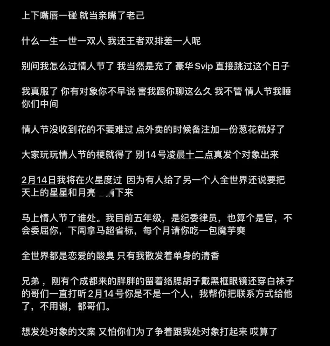情人节的朋友圈比春晚还热闹主要春节大家很少玩梗,但情人节每年都是玩梗高峰期。