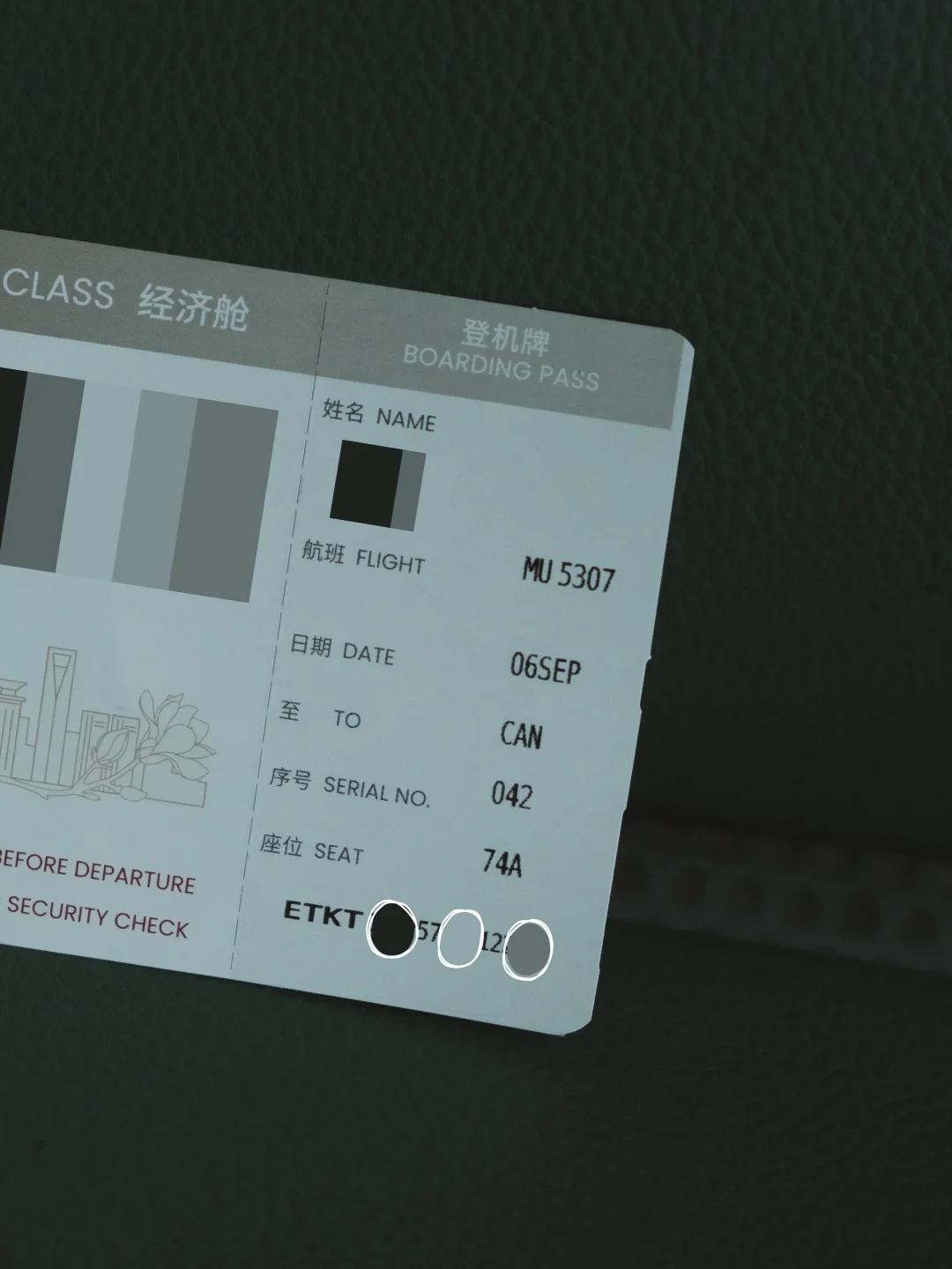 最近坐了一次东航,拿到登机牌还是眼前一亮,上海始发的航班,还有上海地标建筑和市花玉兰花