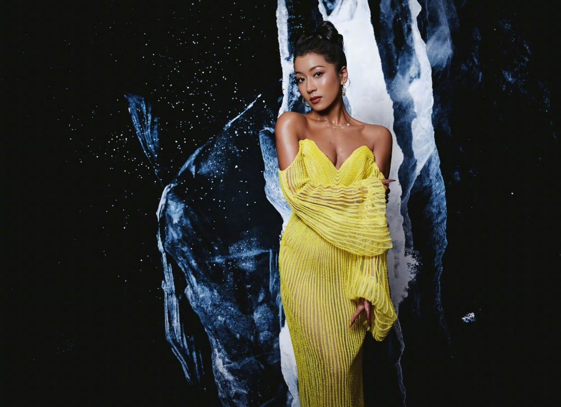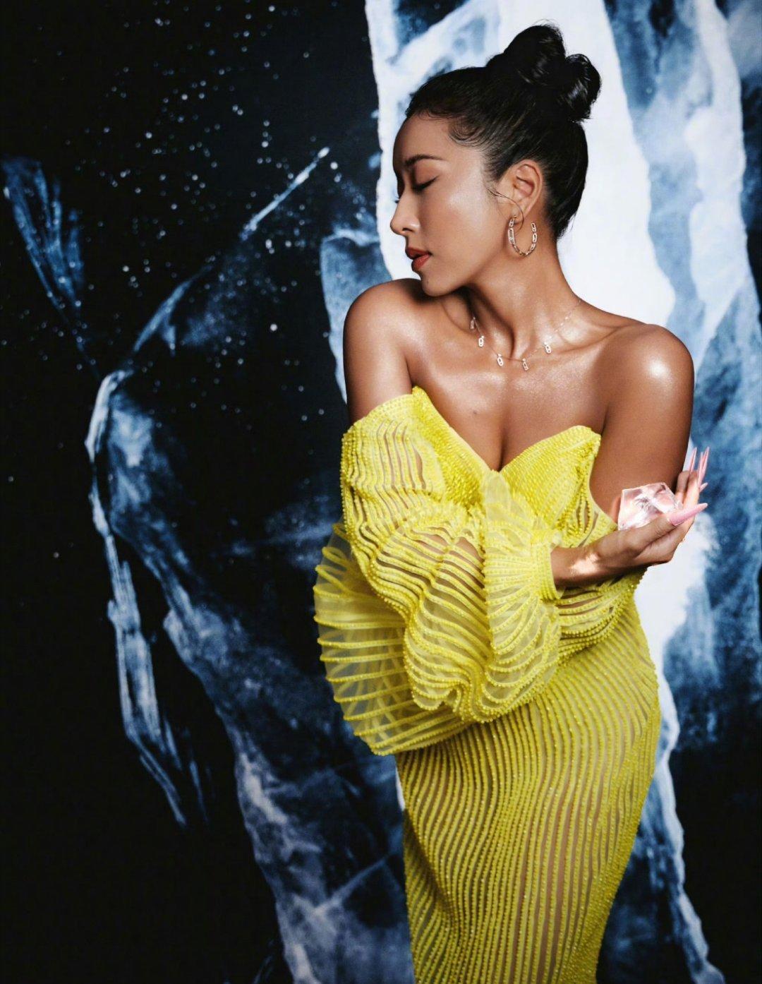 刘亦菲这造型也太美了!抹胸印花裙,印花与黑裙在灯光下闪得我移不开眼,卷发温柔又带
