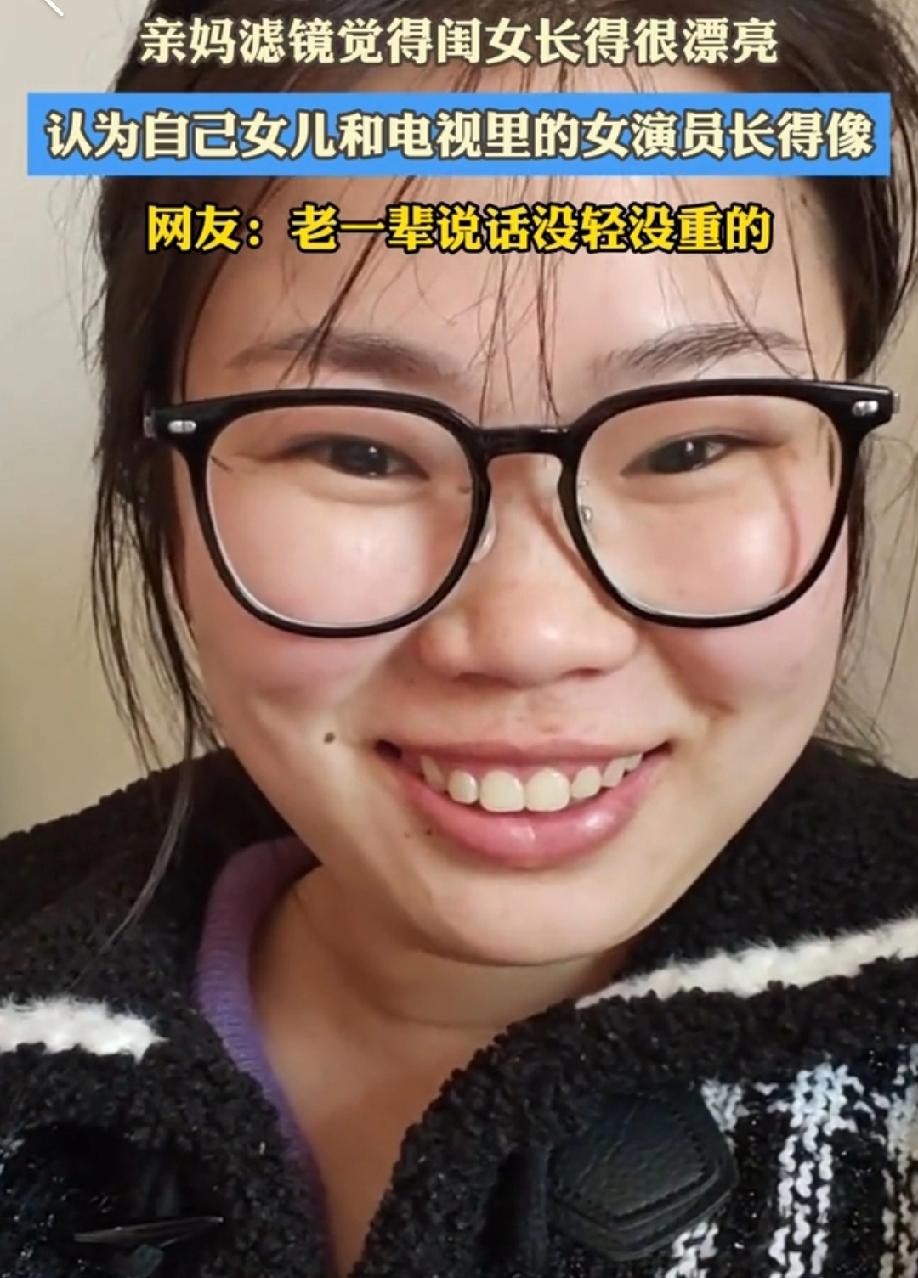 这就是传说的亲妈滤镜? 一亲妈认为闺女长得很漂亮,自己女儿和电视里的女演员长得像。 王楚然啊,古典美人,靠颜值出圈的女演员。镜头一转,我傻眼了!怎么说,不能说不像。起码性别很像,都是女的,眼镜也很像,一模一样的眼镜。剩下的,应该各有特色,风格不一吧。 这亲妈滤镜,太厚重了,是年纪大了,老花眼了? 反正我觉得不像,你们觉得像吗?