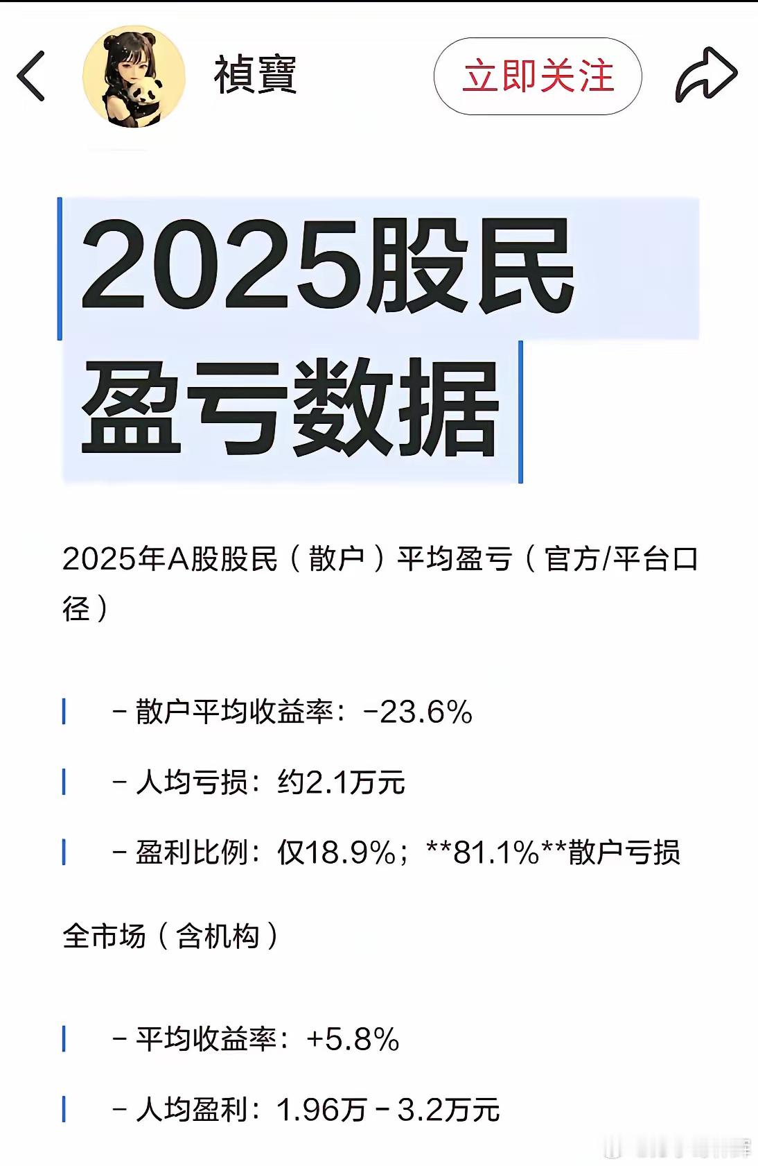 首先标记一下,穿越之时或许用得上。其次,为啥2025年的A股上证涨了18%,创业板暴涨将近50%,七成以上个股上涨,沪指十年来首次站上4000点,400万亿成交额创历史纪录,怎么看都是一大牛市年!结果散户亏损比例81.1%,人均亏2.1万...市场明明在发钱,八成人还是亏了?