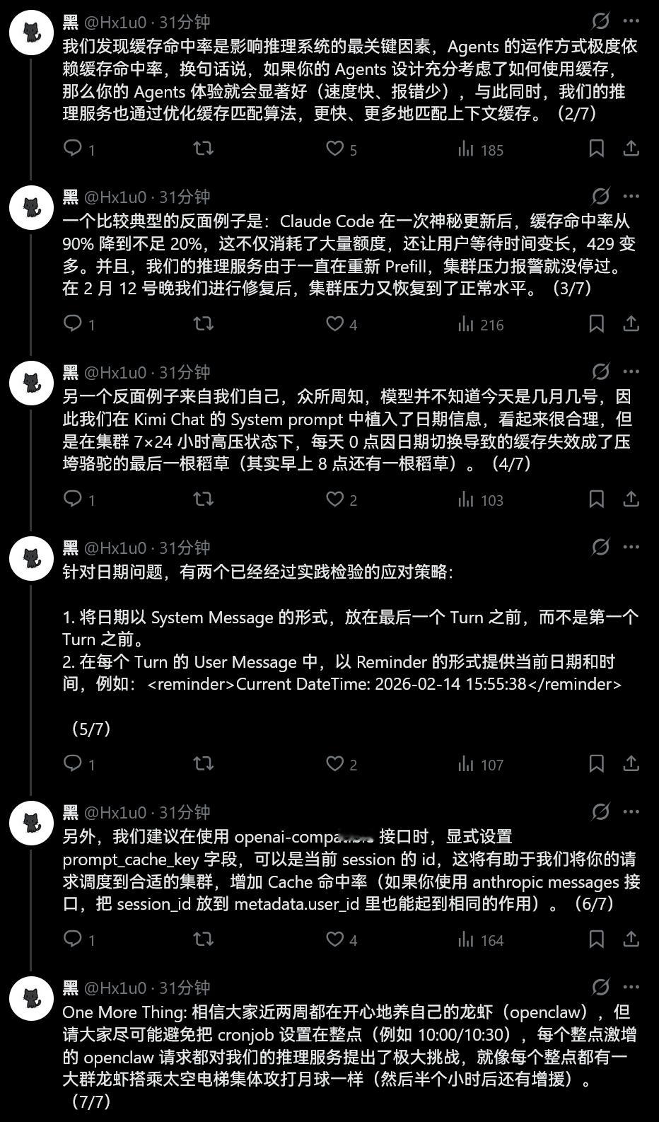 One More Thing: 相信大家近两周都在开心地养自己的龙虾(openclaw),但请大家尽可能避免把 cronjob 设置在整点(例如 10:00/10:30),每个整点激增的 openclaw 请求都对我们的推理服务提出了极大挑战,就像每个整点都有一大群龙虾搭乘太空电梯集体攻打月球一样(然后半个小时后还有增援)。