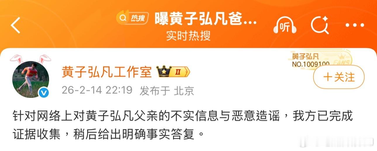 黄子弘凡工作室辟谣随后黄子弘凡工作室表示已经完成证据收集,将很快给出明确事实答复,并在2月15日零点刚过转发律师要告“伤心swimming”侵犯名誉权+涉嫌诽谤的律师声明,强调黄金中给的只是预录取通知书,钱都是打给留学机构的,黄金中既不知道她打了钱也没参与伤心swimming和留学机构的后续交易。