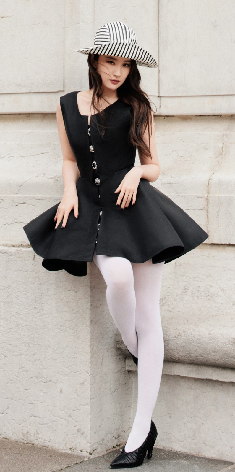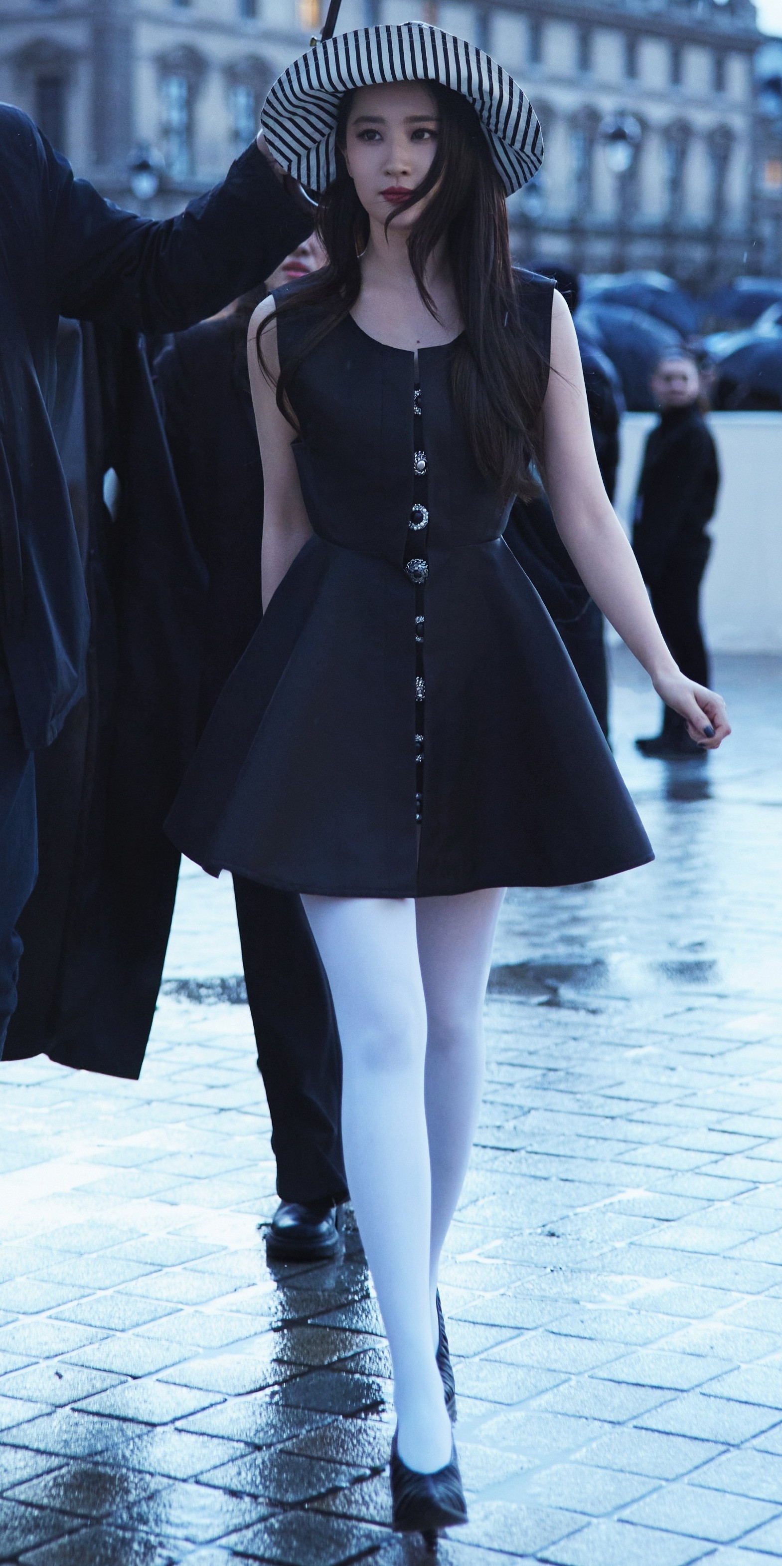 刘亦菲:少见白色丝袜妆造,英伦风满满。刘亦菲黄亦玫
